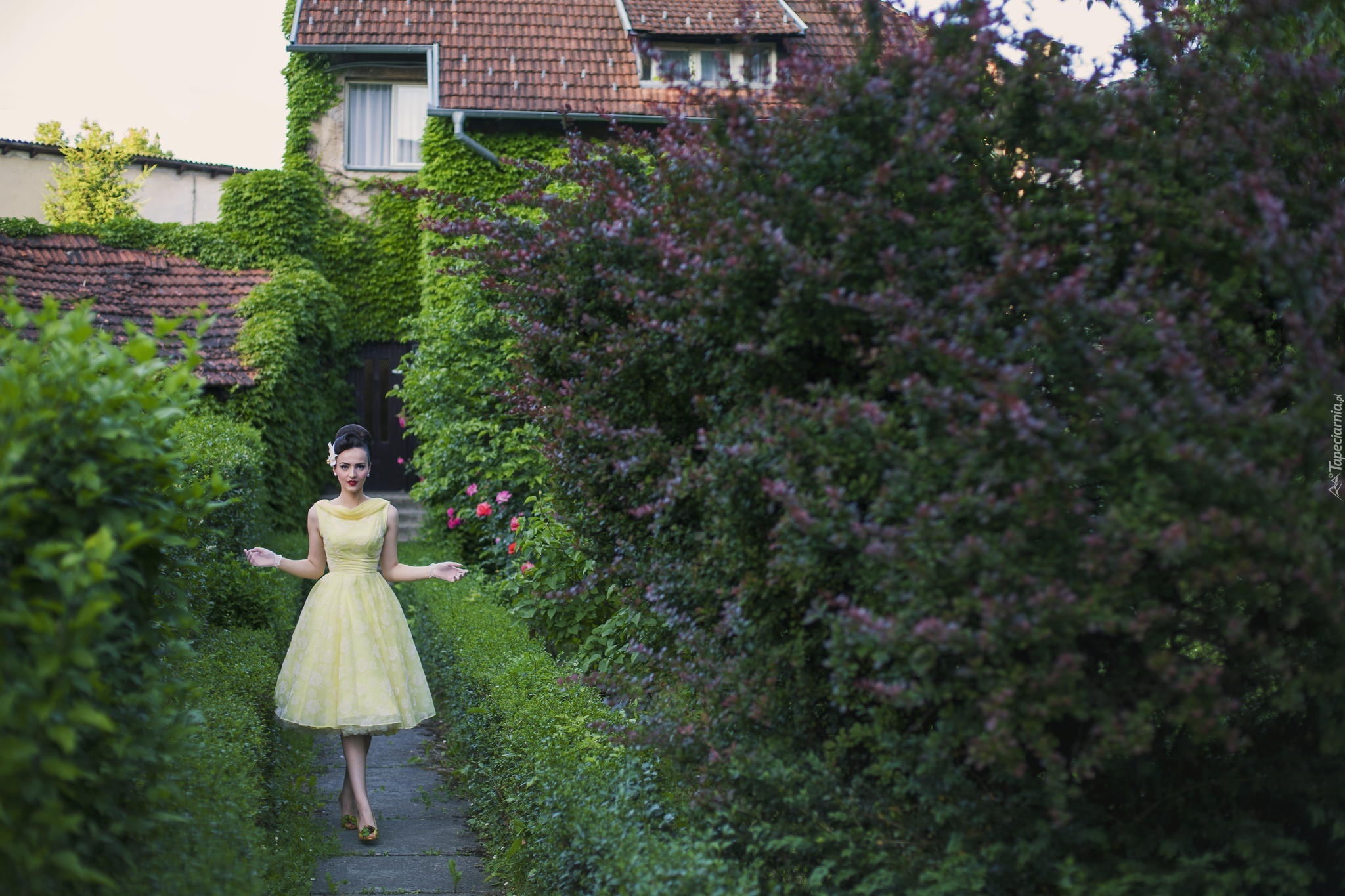 Edytor tapety: Kobieta, Dom, Ogród, Kwitnące, Drzewa, Krzewy