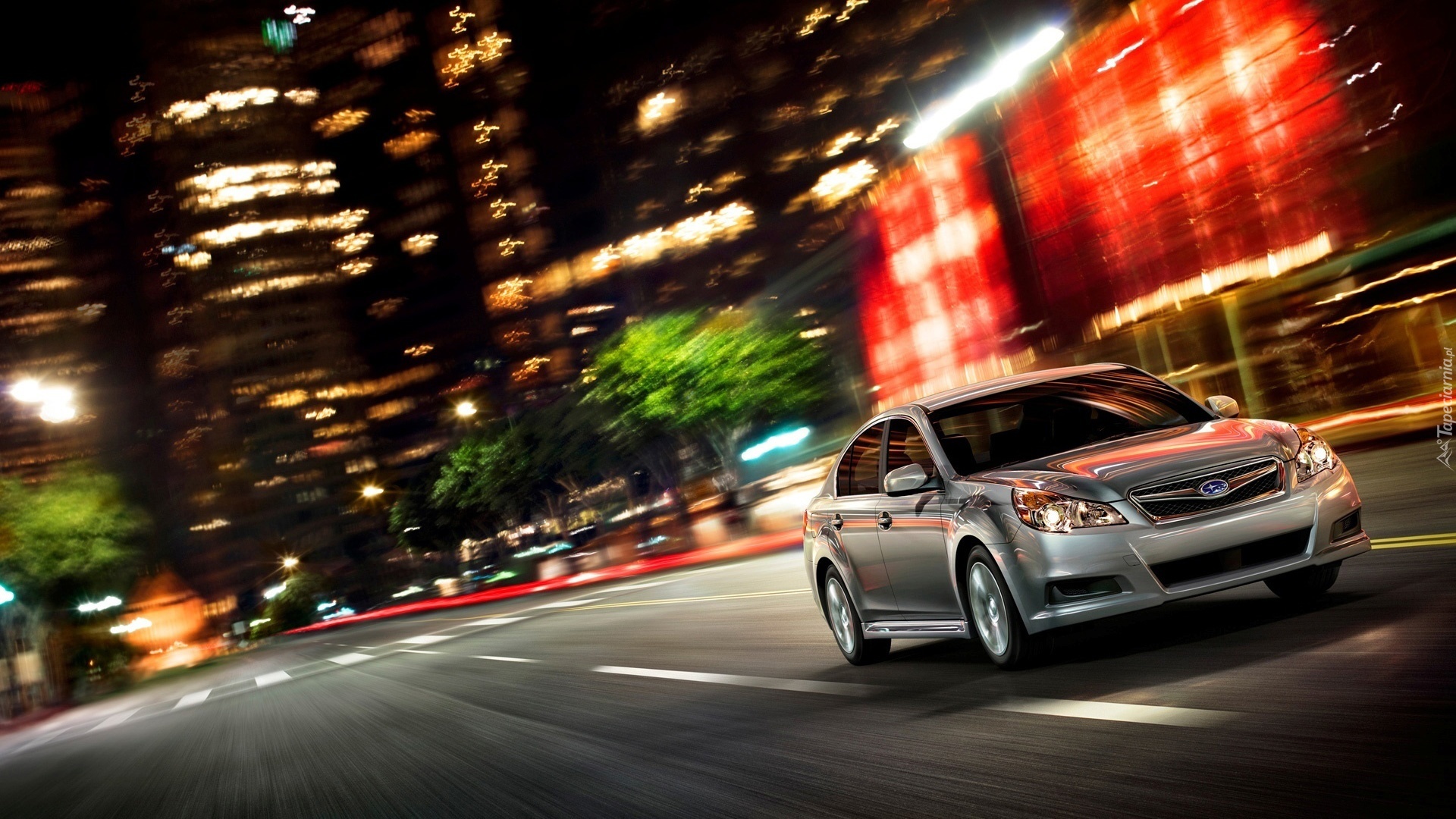 Edytor tapety: Srebrny, Samochód, Subaru, Miasto, Ulica, Noc