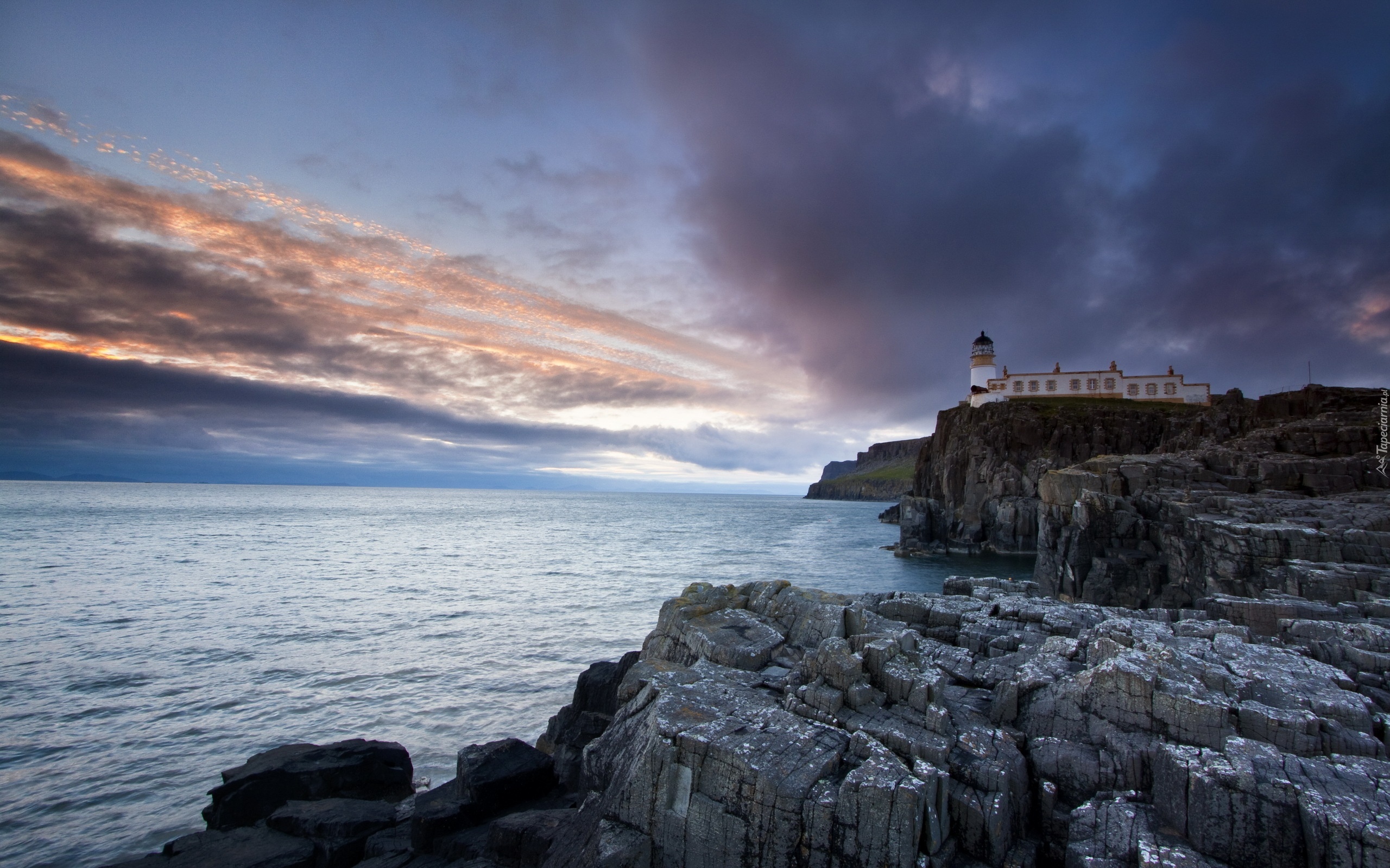 Edytor tapety: Latarnia, Morska, Skały, Chmury, Morze