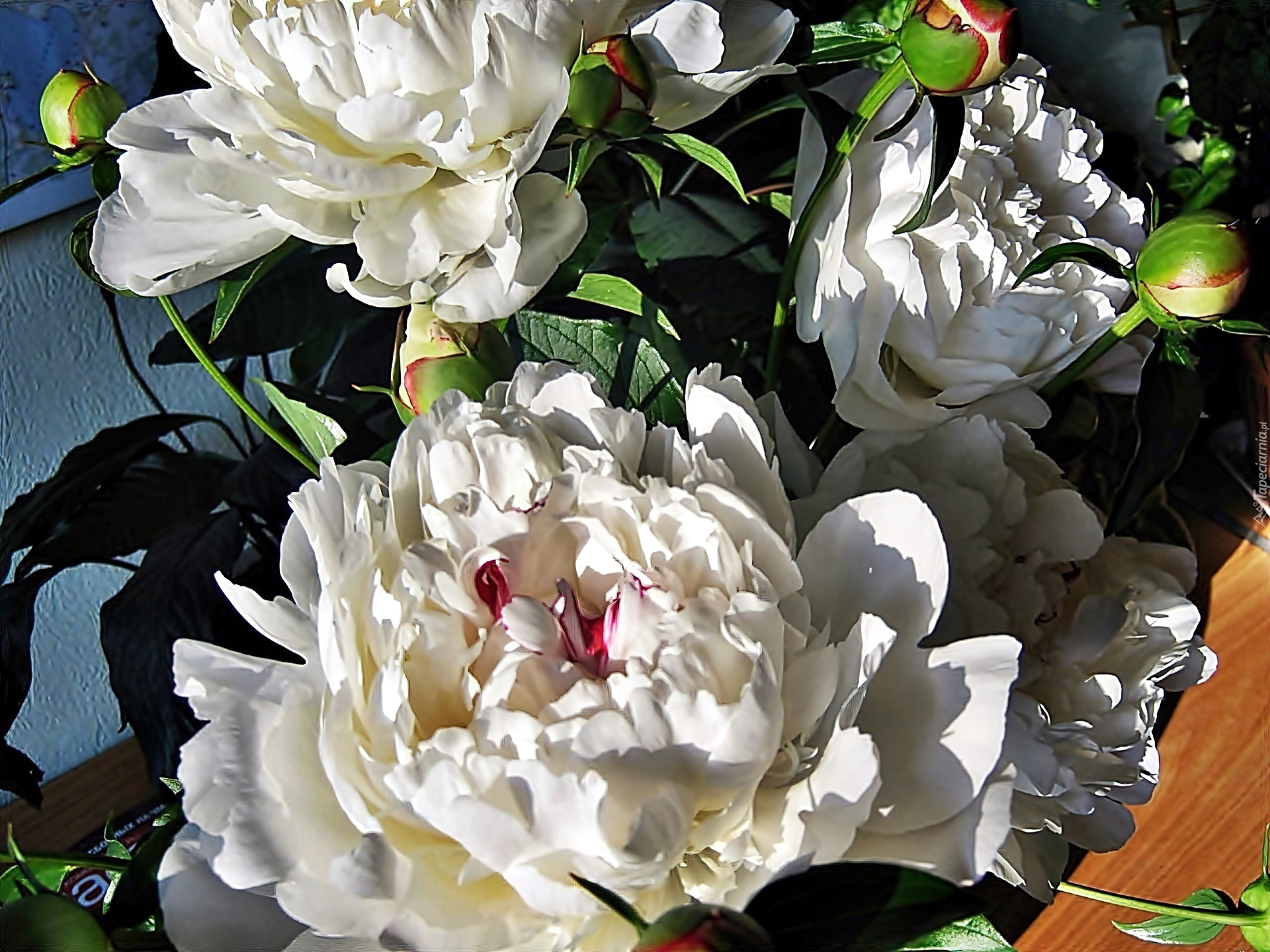 Edytor tapety: Białe, Piwonie, Rozmycie