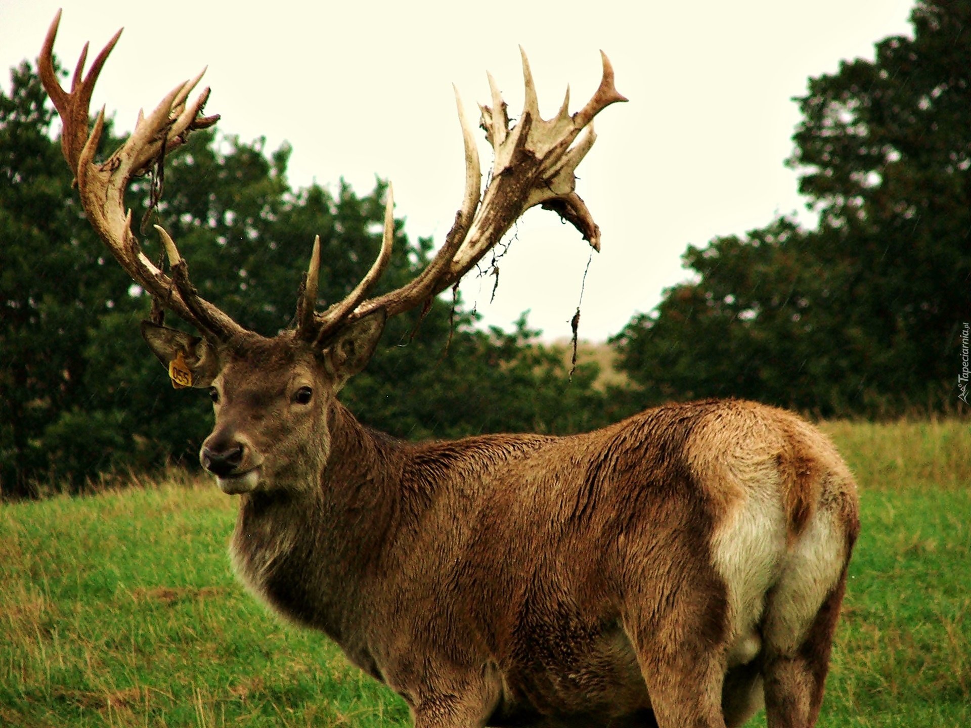 Edytor tapety: Jeleń, Łąka, Drzewa, Rozmycie