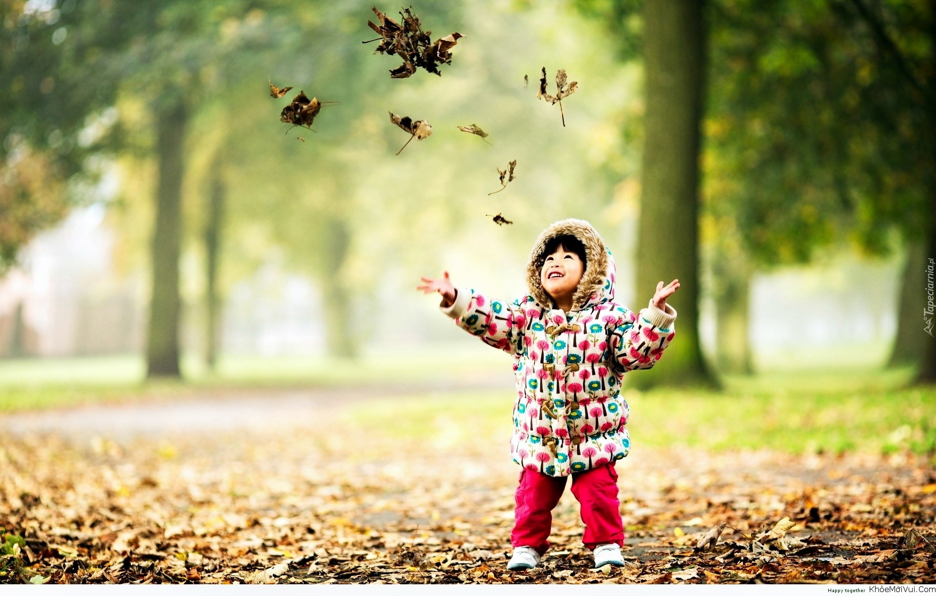 Edytor tapety: Jesień, Park, Chłopiec, Opadłe, Liście, Rozmycie