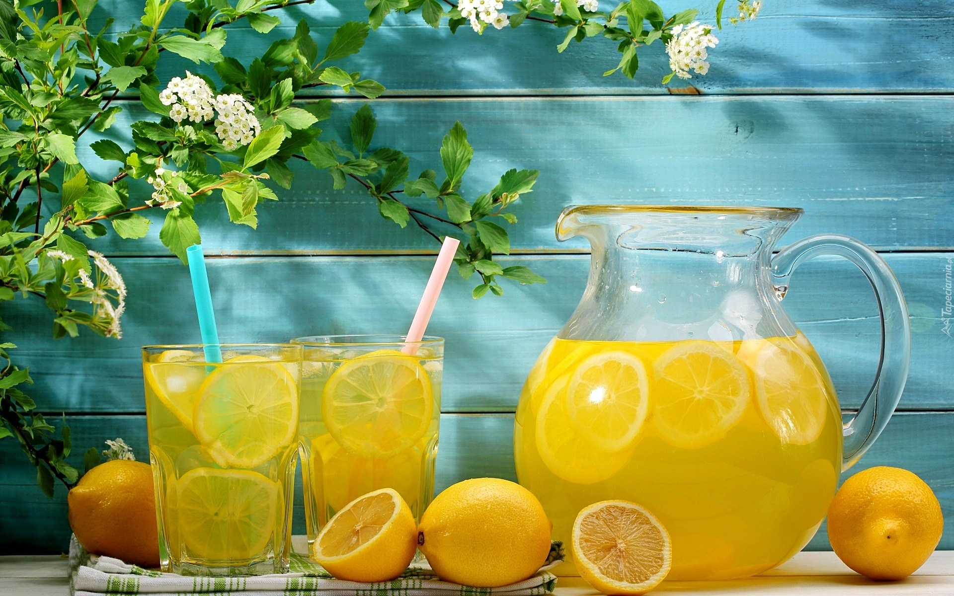 Edytor tapety: Lemoniada, Cytryny, Napoje, Kwiaty, Lato