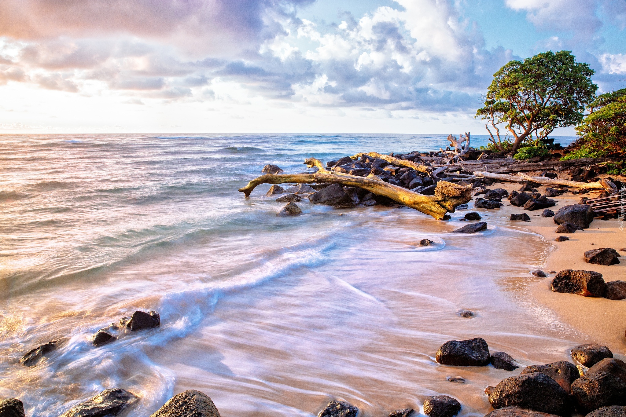 Edytor tapety: Morze, Brzeg, Kamienie, Drzewa
