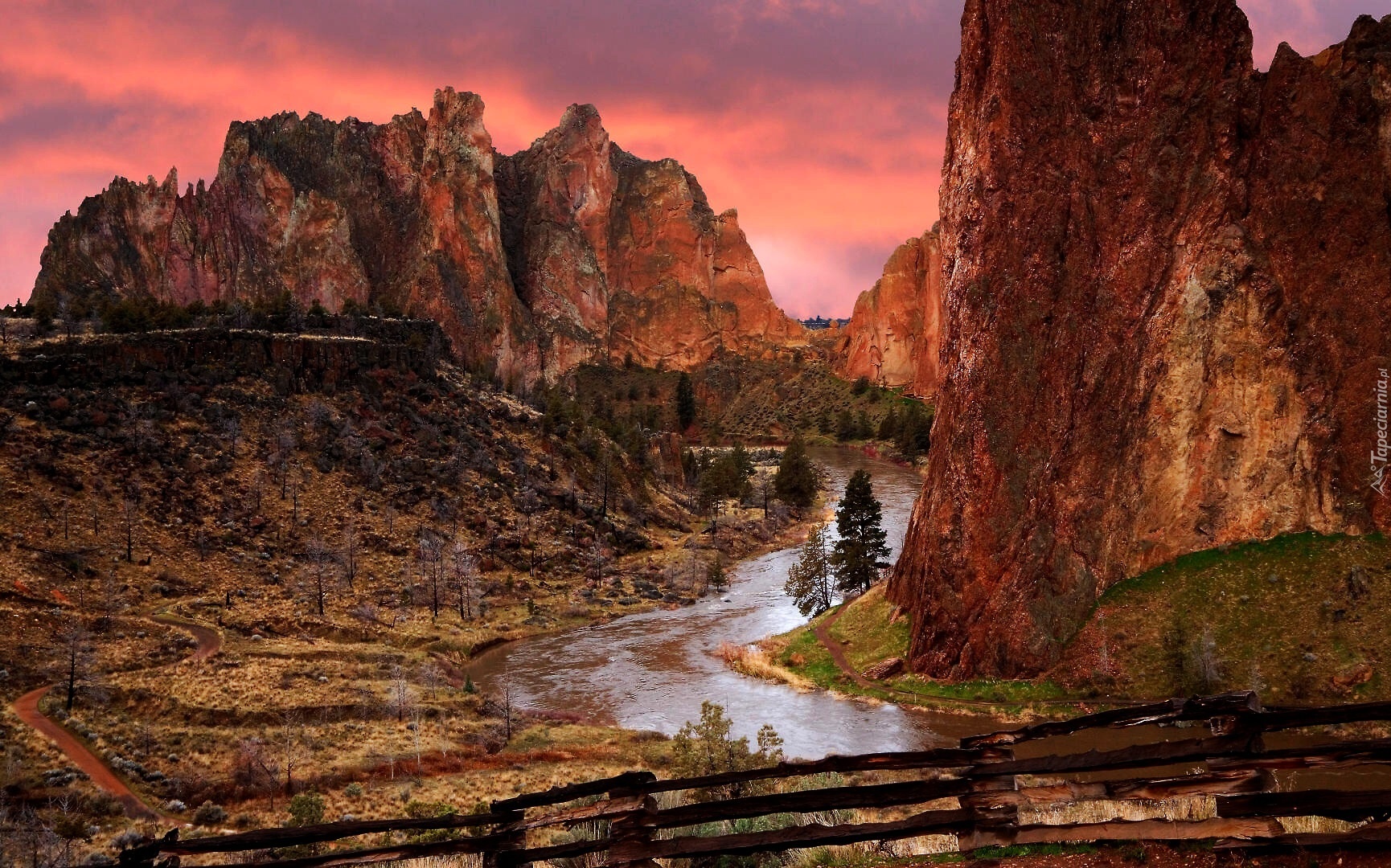 Edytor tapety: Góry, Rzeka, Zachód Słońca