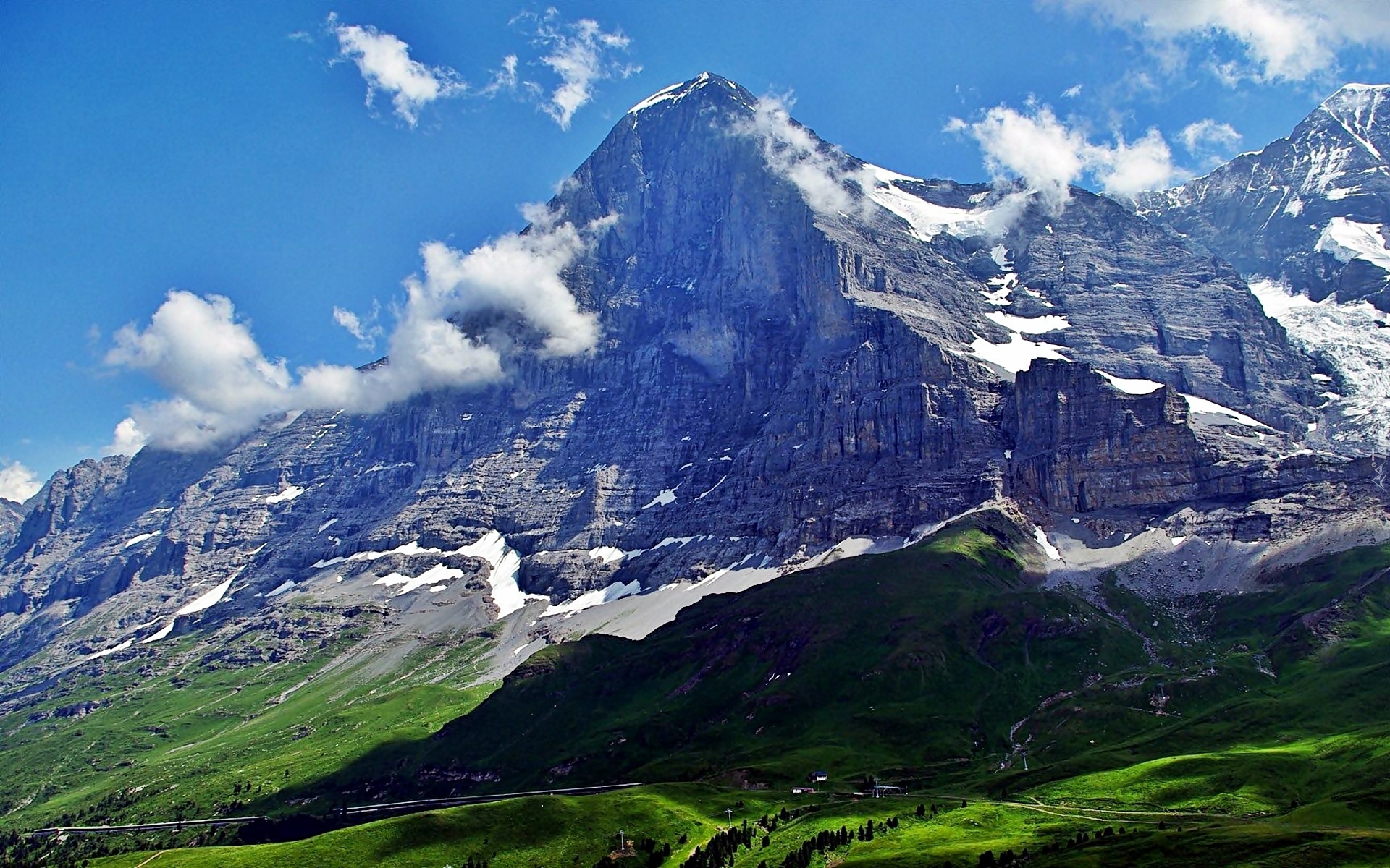 Edytor tapety: Góry, Chmury, Łąki, Przebijające, Światło