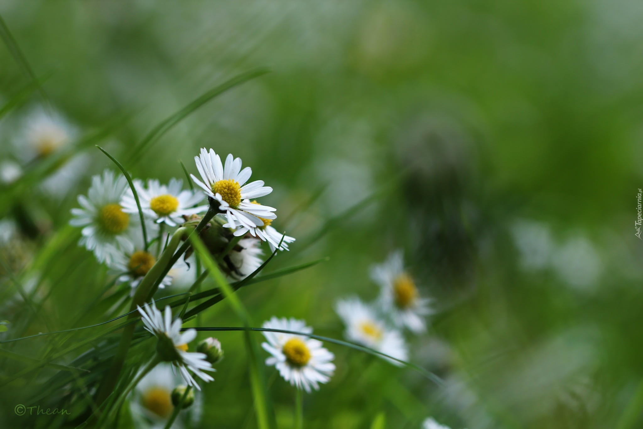 Edytor tapety: Stokrotki, Białe, Kwiaty, Trawa