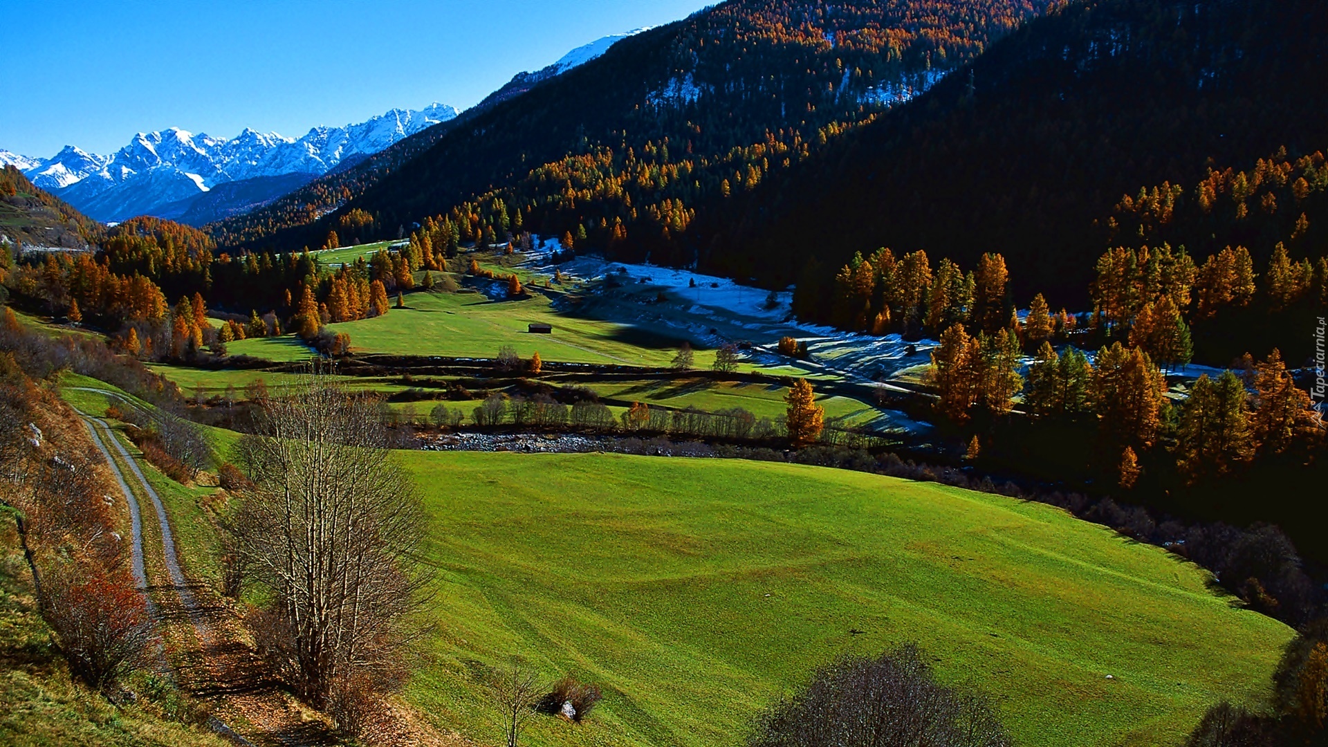 Edytor tapety: Jesień, Góry, Lasy, Łąki, Droga