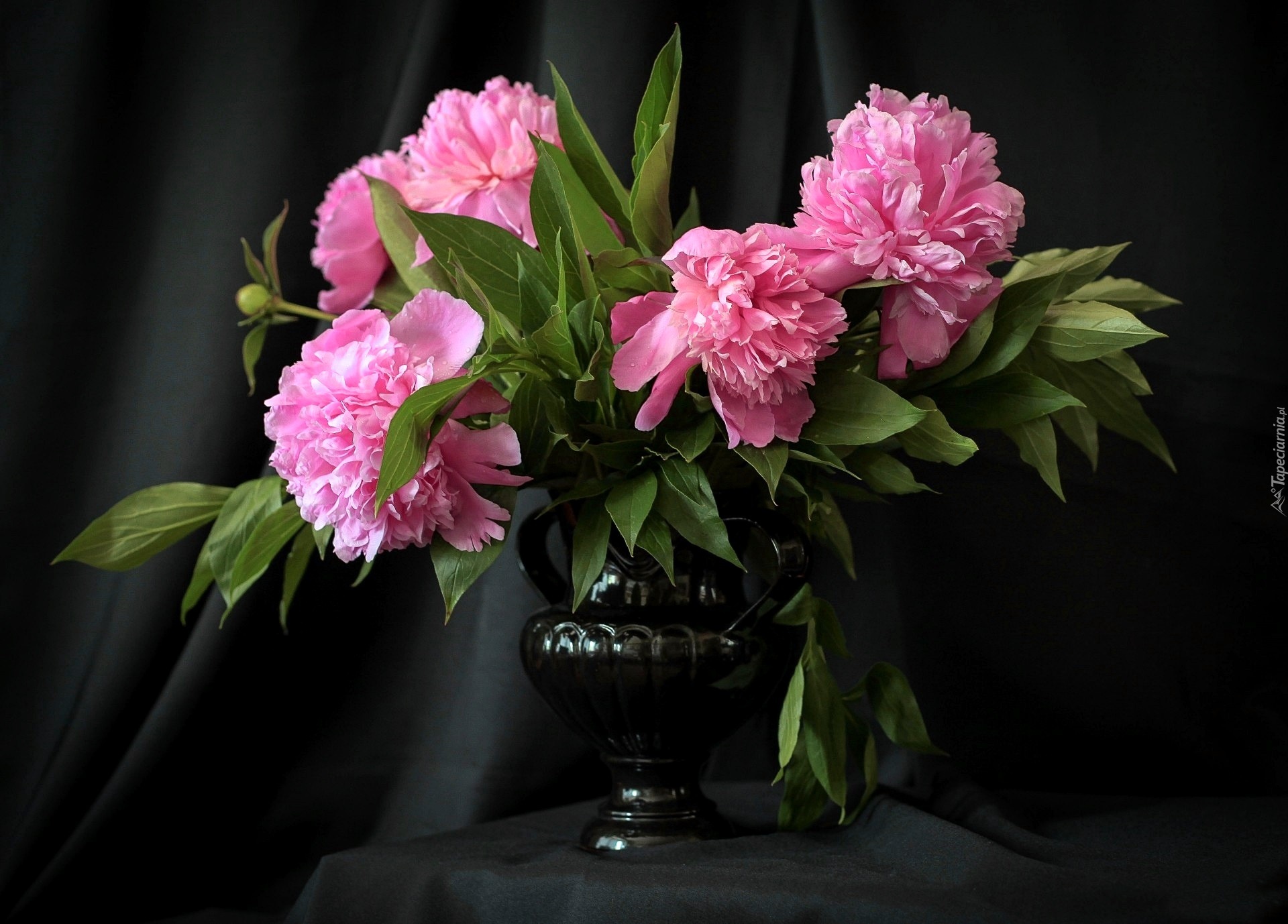 Edytor tapety: Różowe, Piwonie, Wazon, Kompozycja