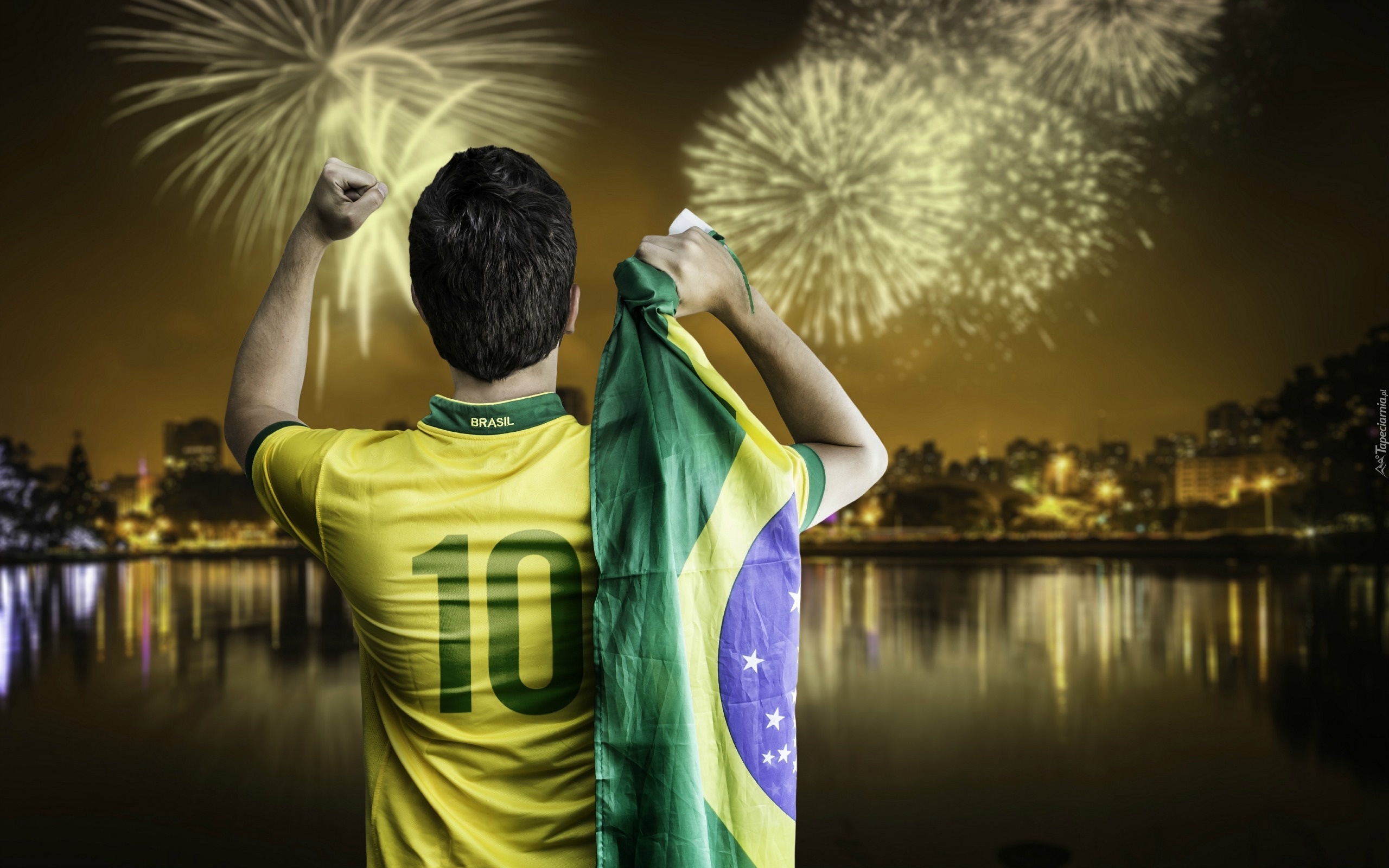 Edytor tapety: Piłkarz, Flaga, Fajerwerki, Rzeka, Mistrzostwa, Świata, Brazylia, 2014