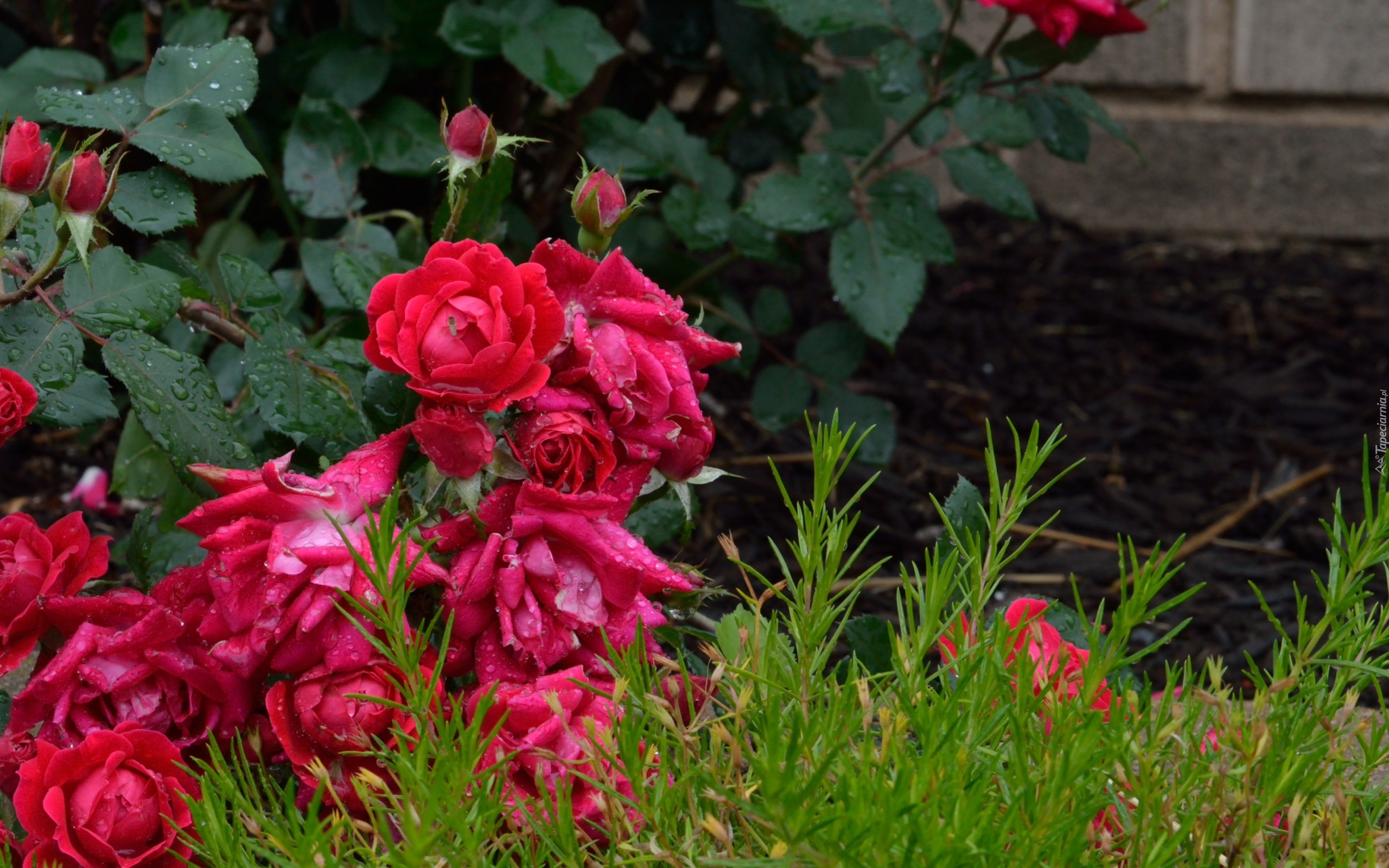 Edytor tapety: Krzew, Różany, Trawa, Mur