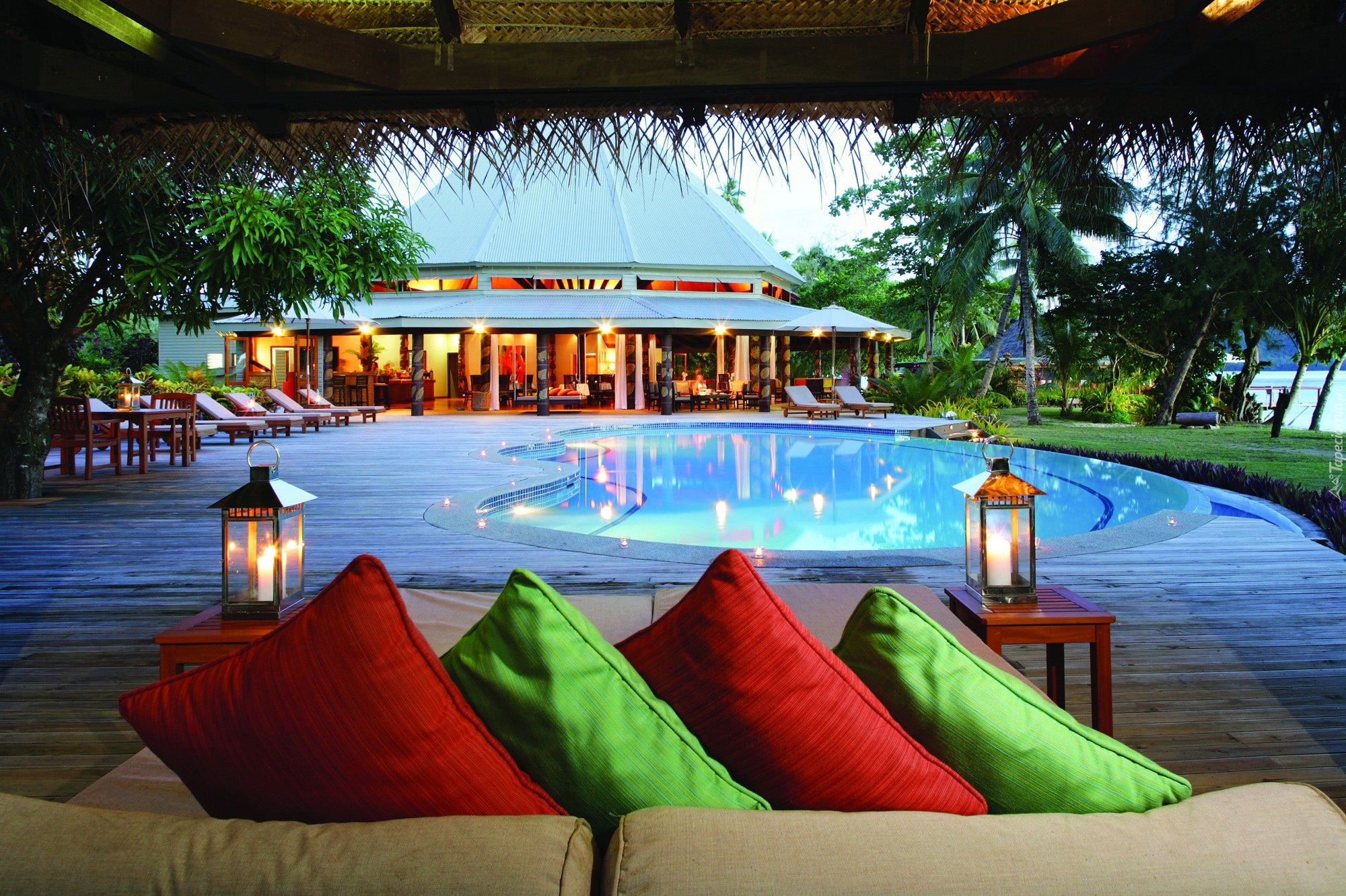 Edytor tapety: Basen, Leżaki, Wakacje