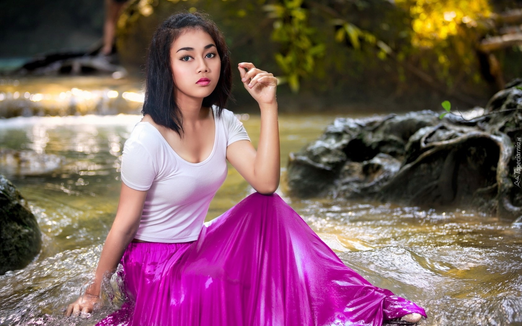 Edytor tapety: Kobieta, Makijaż, Woda, Kamienie