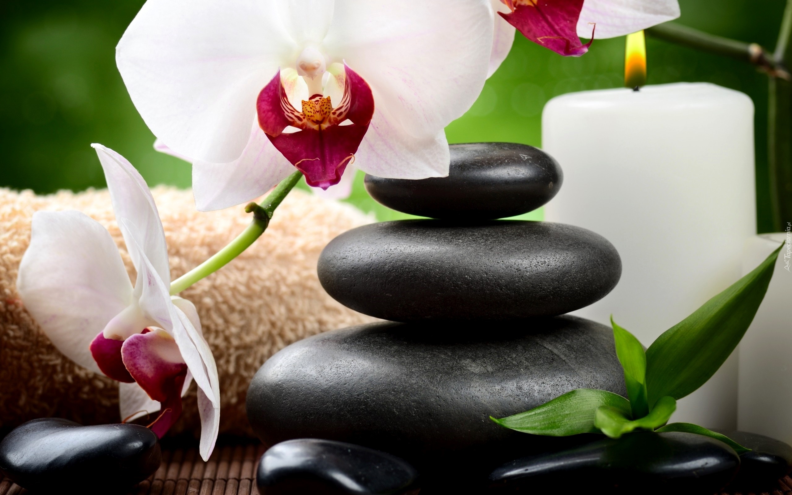 Edytor tapety: Orchidea, Świeca, Kamienie, SPA, Kompozycja Świeca