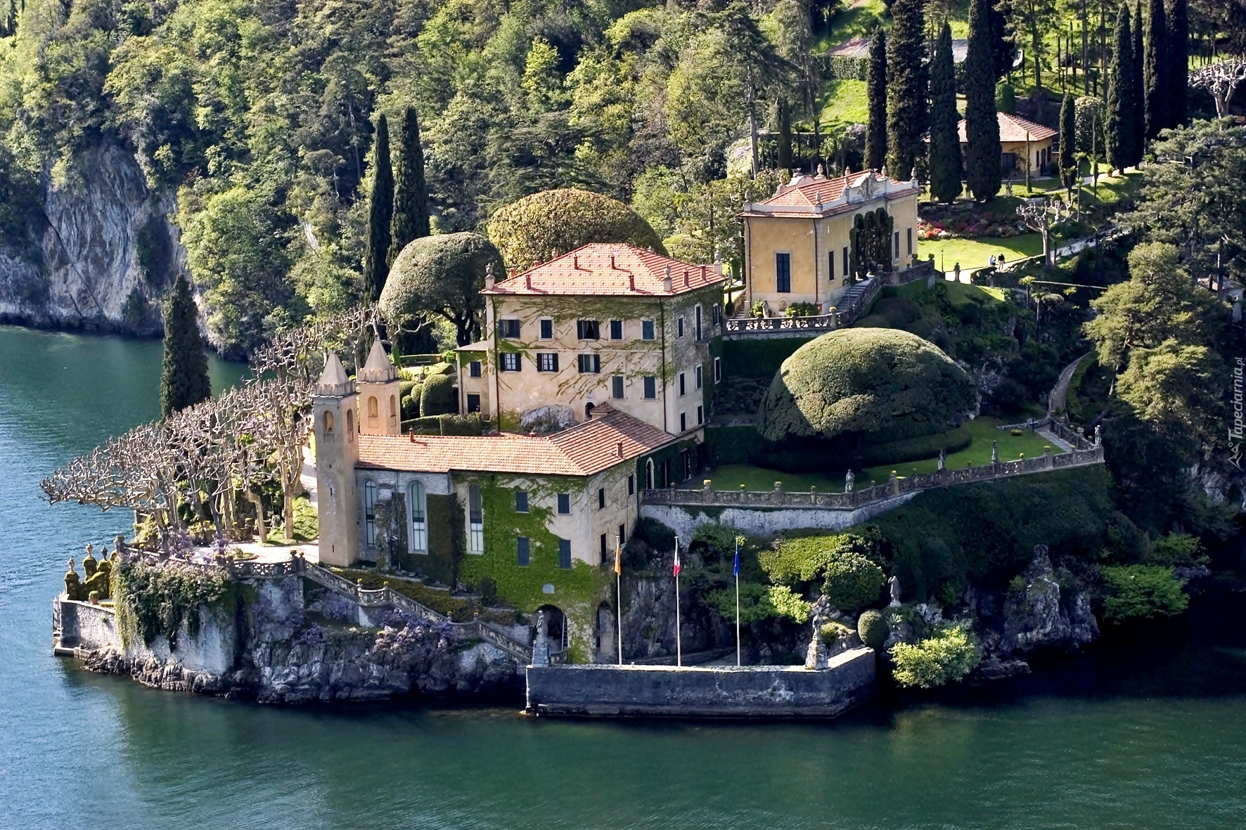 Edytor tapety: Jezioro, Como, Lenno, Willa, Balbianello, Drzewa