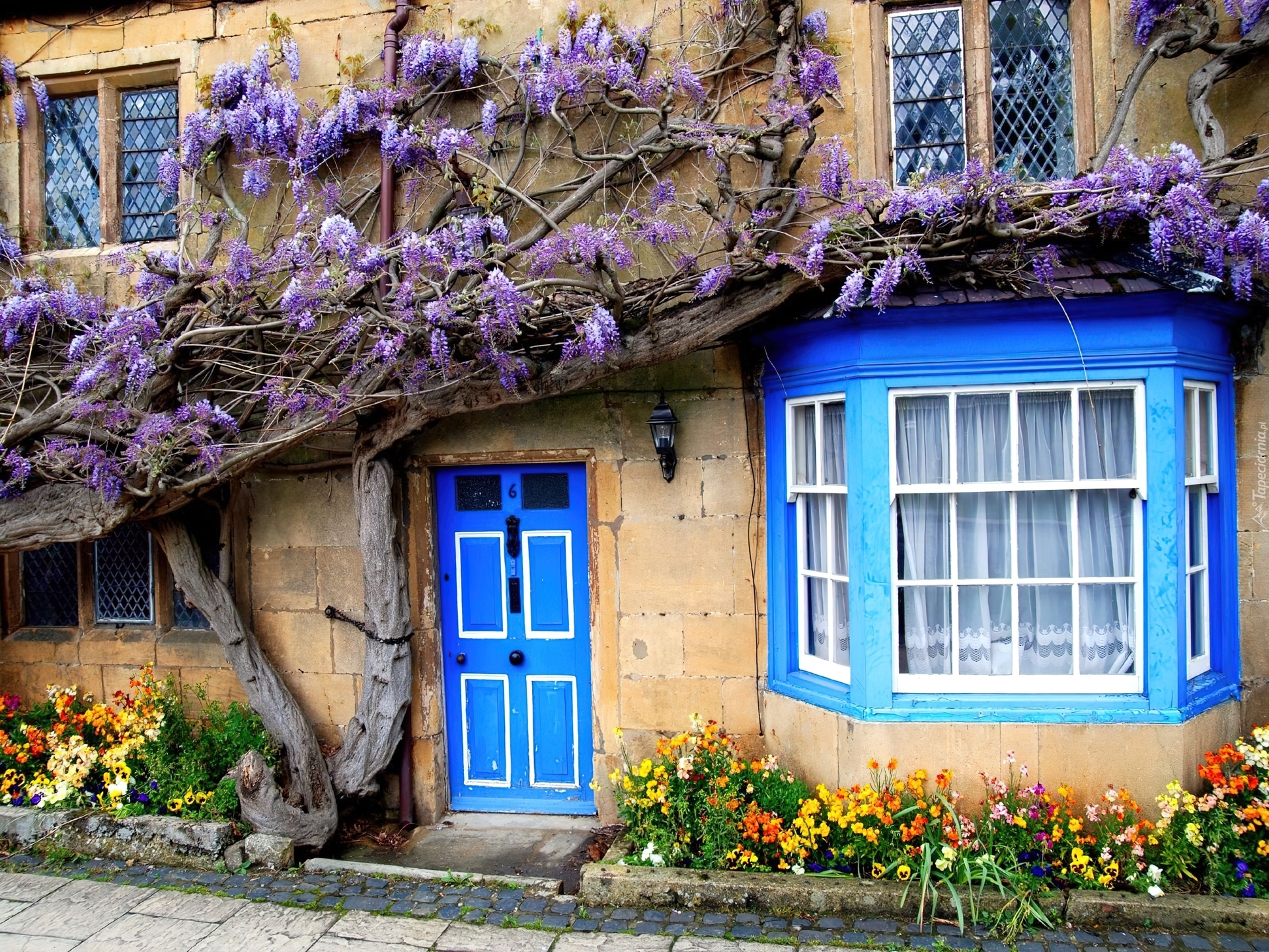 Edytor tapety: Dom, Drzwi, Okno, Krzew, Kwiatowy