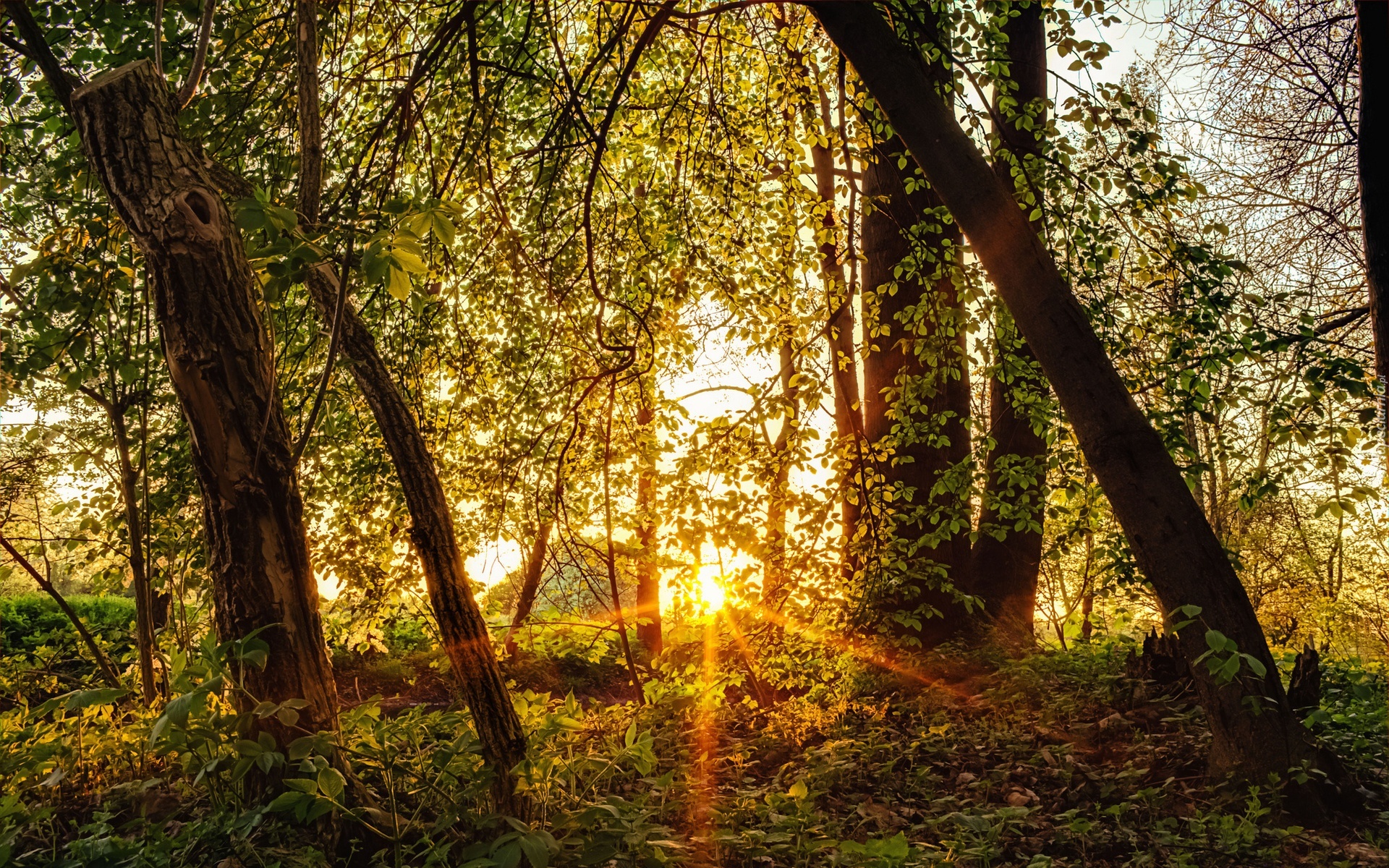 Edytor tapety: Las, Drzewa, Promienie, Słońca, Wiosna