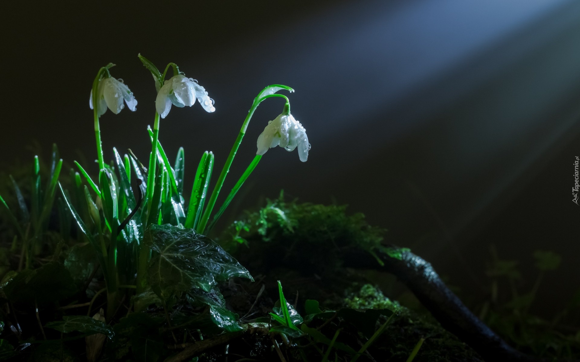 Edytor tapety: Przebiśniegi, Rosa, Przebijające, Światło