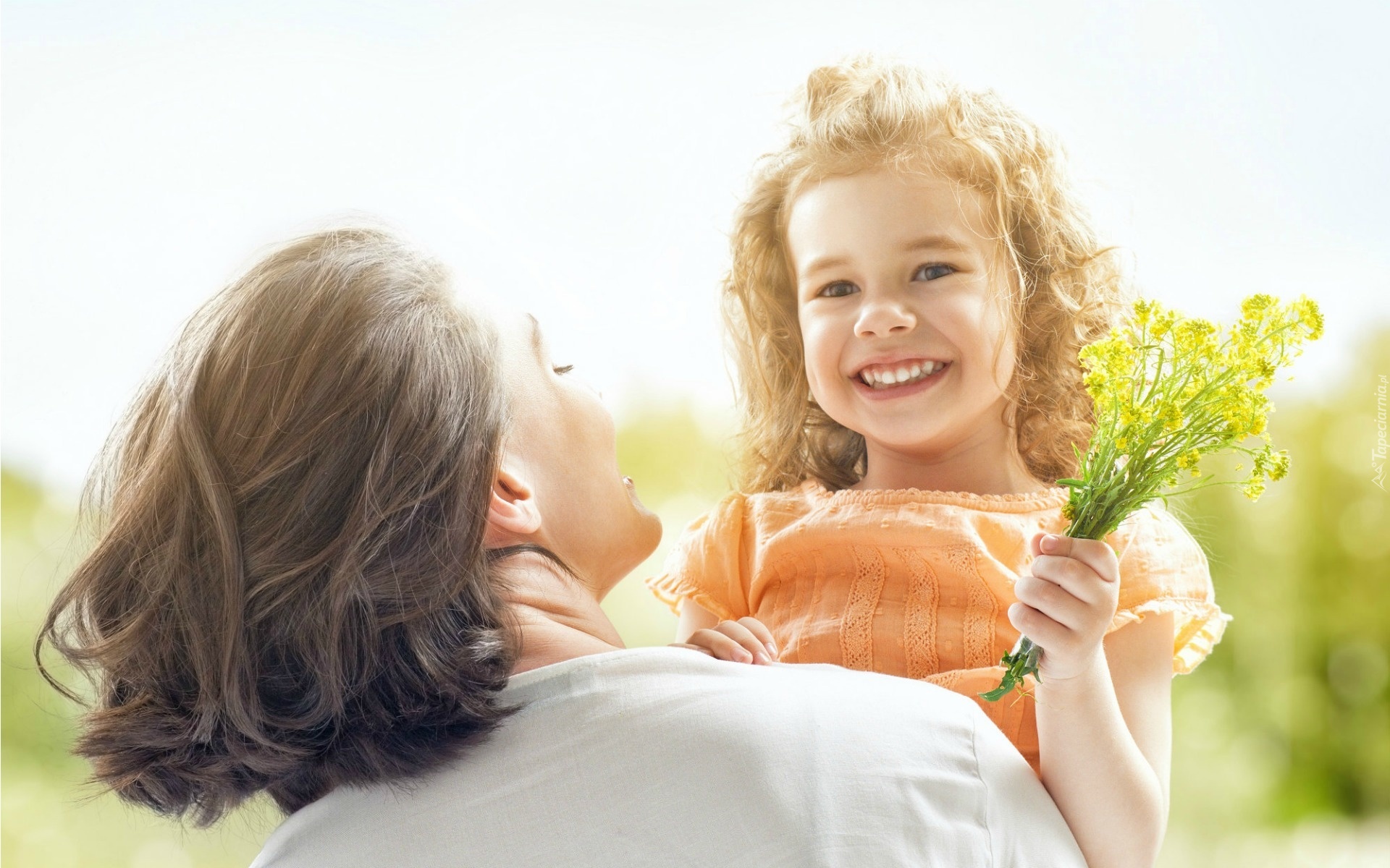 Edytor tapety: Kobieta, Dziecko, Bukiecik, Kwiatów, Dzień, Matki