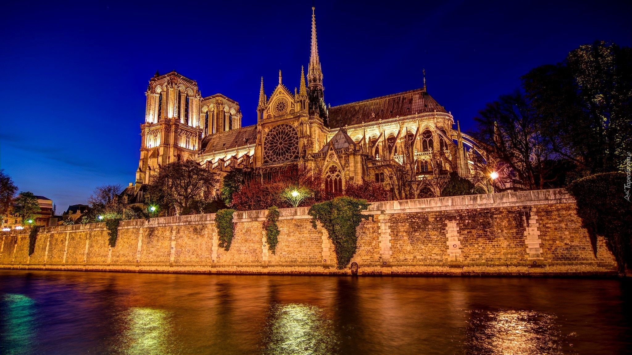 Edytor tapety: Oświetlona, Katedra Notre Dame, Noc, Paryż, Francja