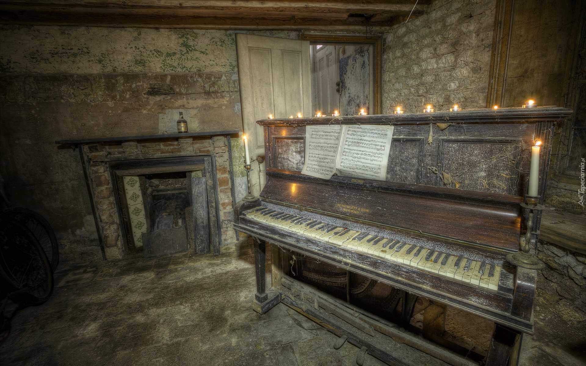 Edytor tapety: Stare, Pianino, Opuszczony, Pokój, Kominek, Nuty, Świece