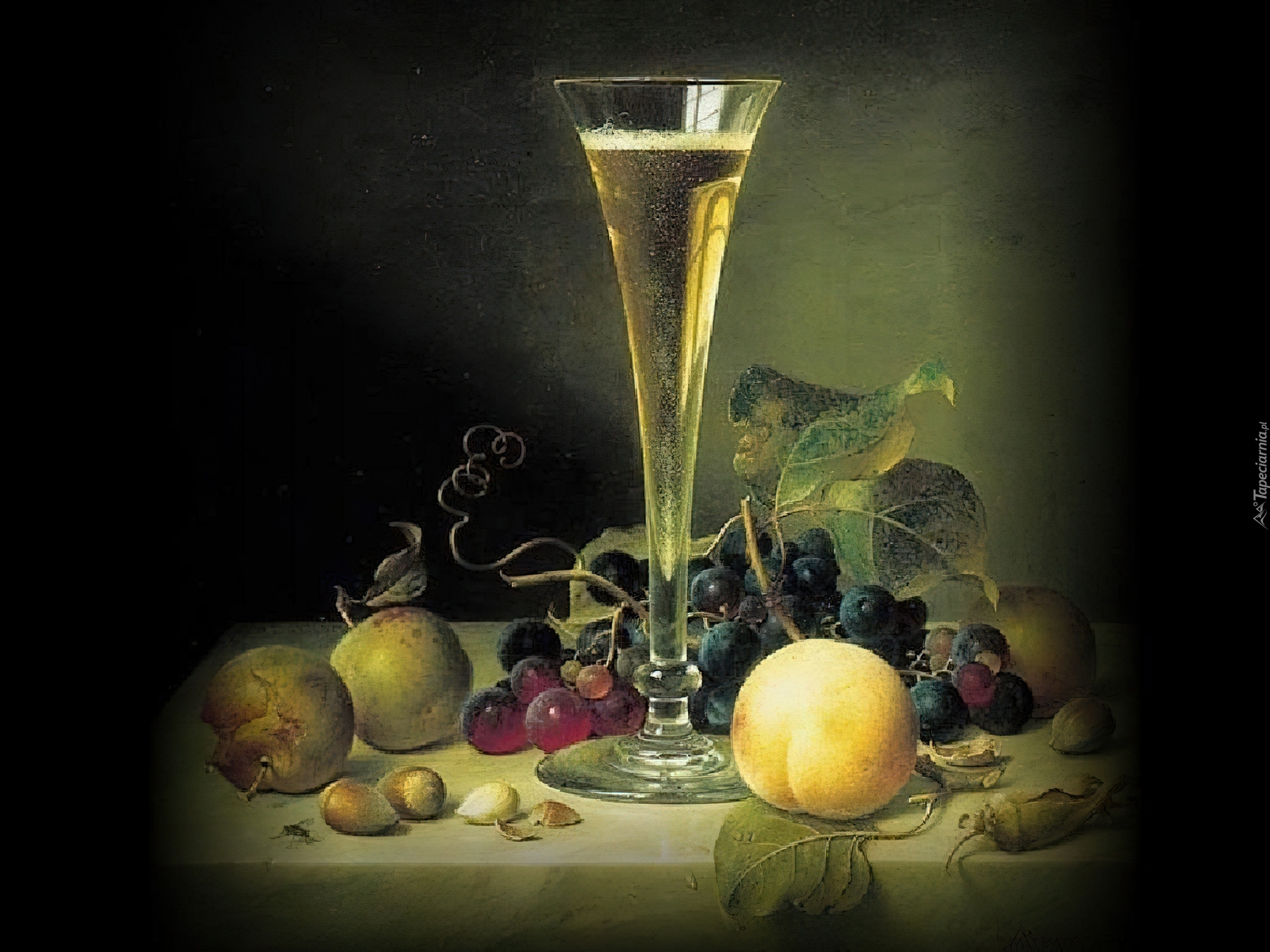 Edytor tapety: Szampan, kieliszek, owoce