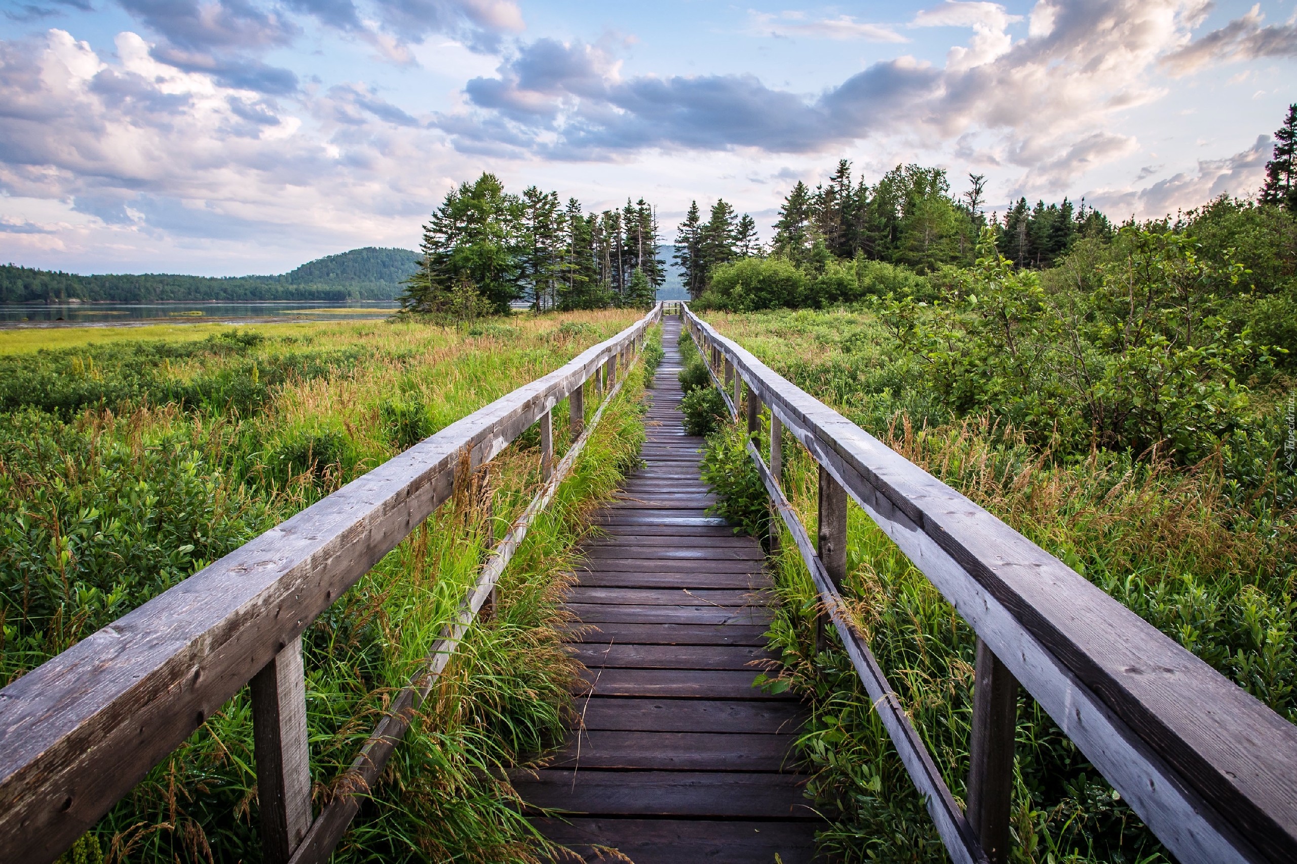 Edytor tapety: Drewniany, Mostek, Łąki, Drzewa