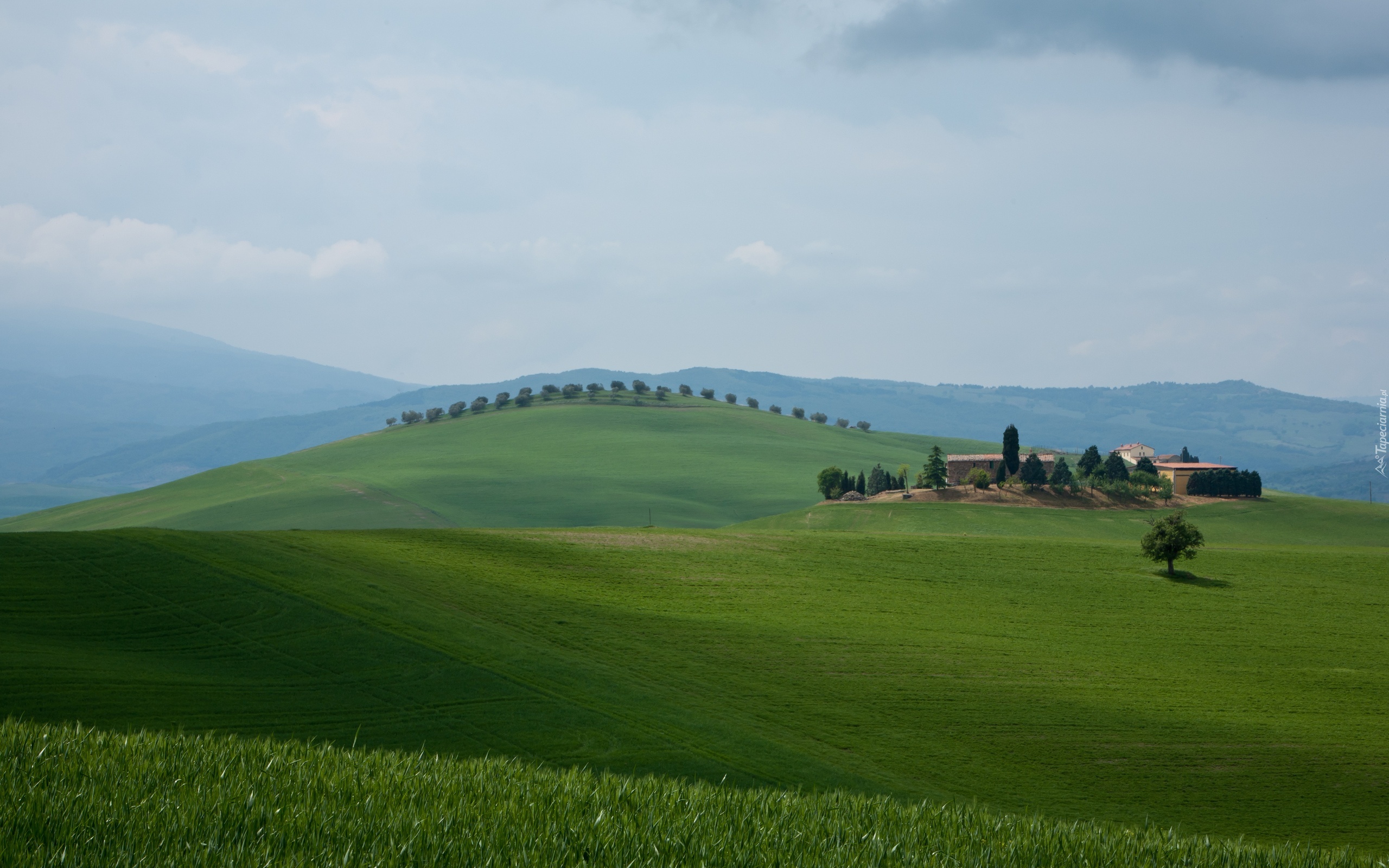 Edytor tapety: Łąki, Domy, Drzewa, Góry, Toskania, Włochy