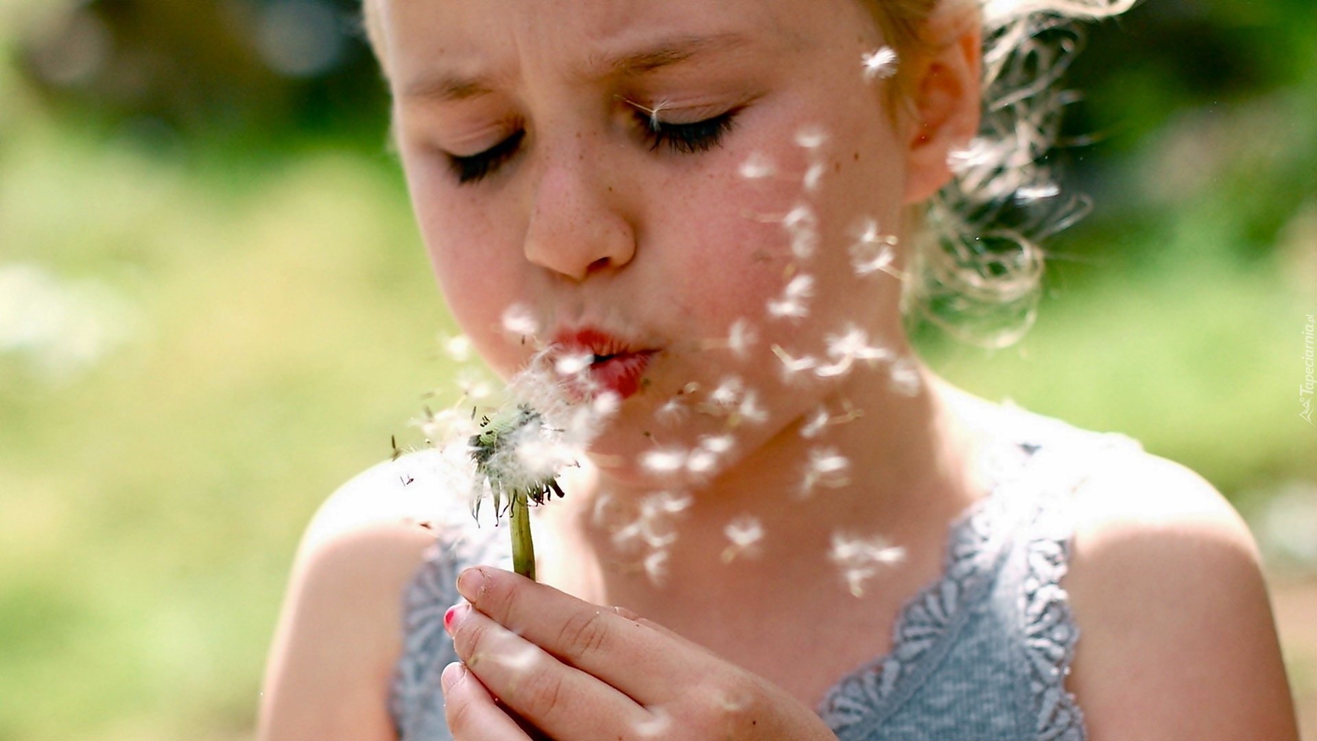 Edytor tapety: Dziewczynka, Dmuchawiec, Zbliżenie, Rozmycie