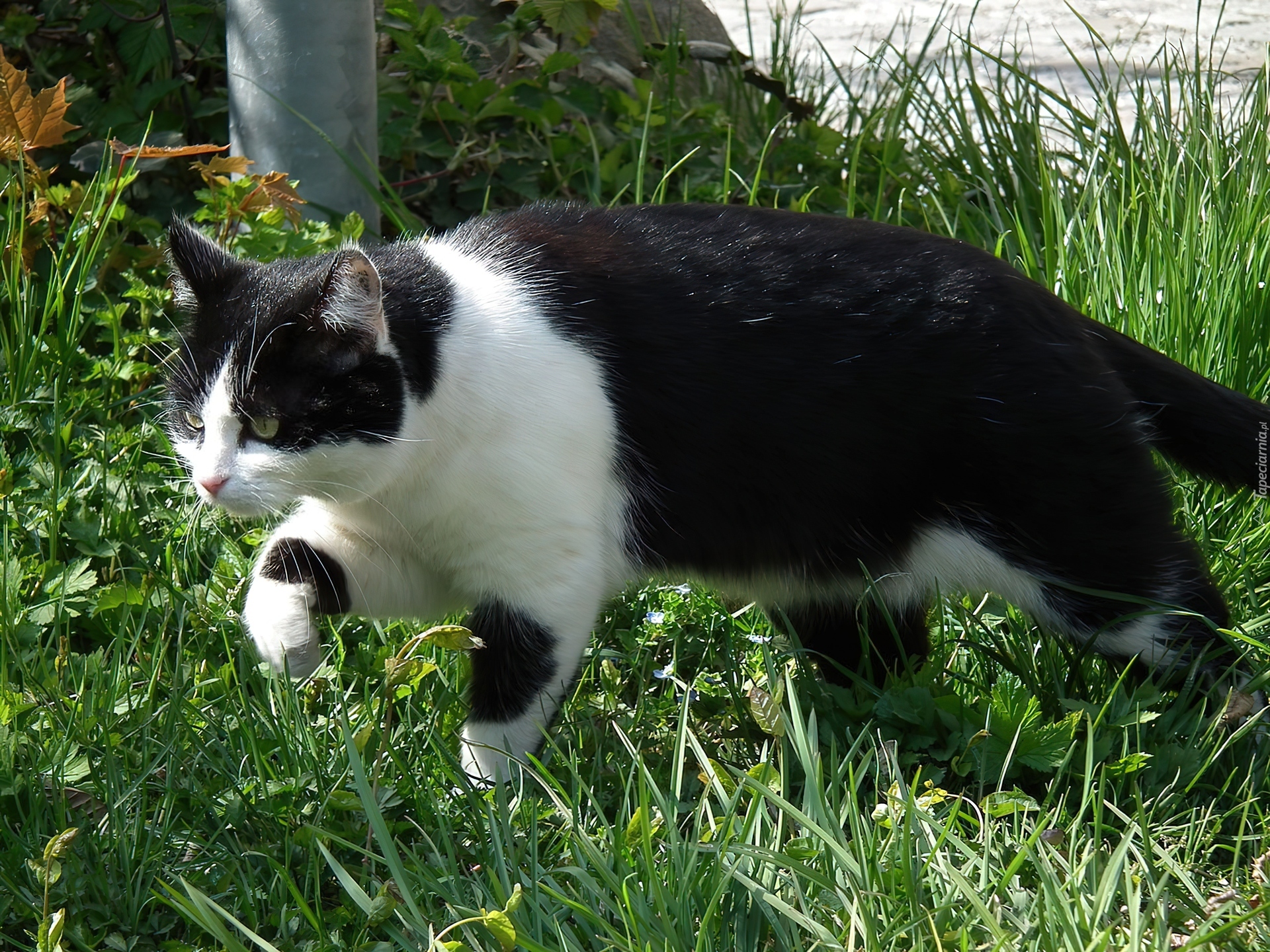 Edytor tapety: Kotek, Czarno, Biały, Trawa