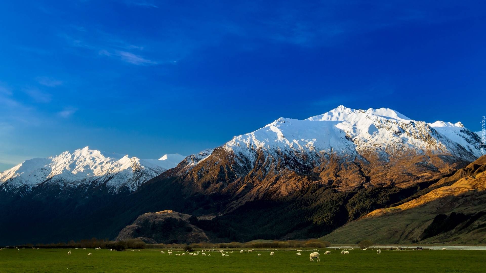 Edytor tapety: Łąka, Zwierzęta, Góry, Ośnieżone, Szczyty, Nowa, Zelandia