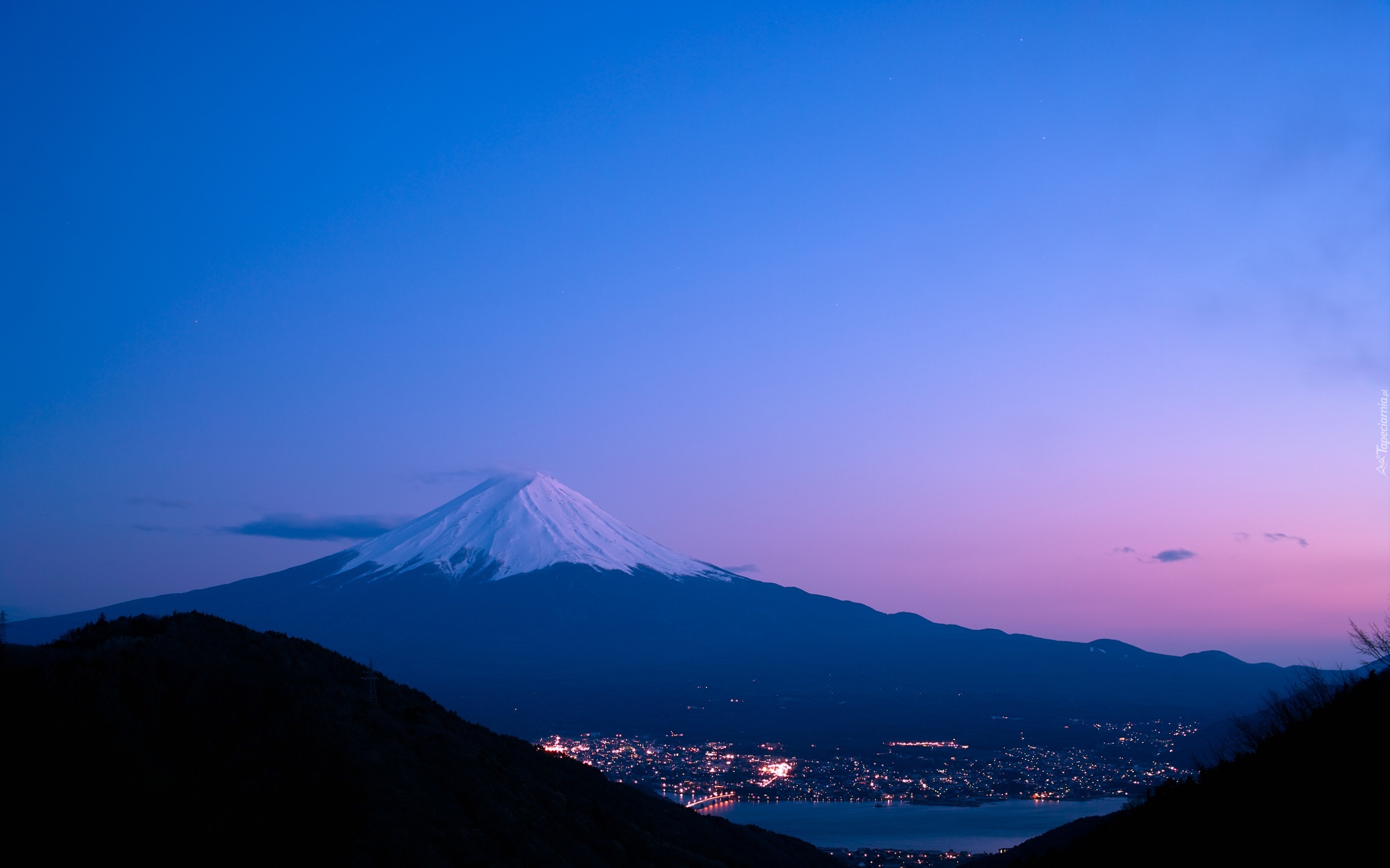 Edytor tapety: Fudżi, Miasto, Jezioro, Góry, Noc, Japonia