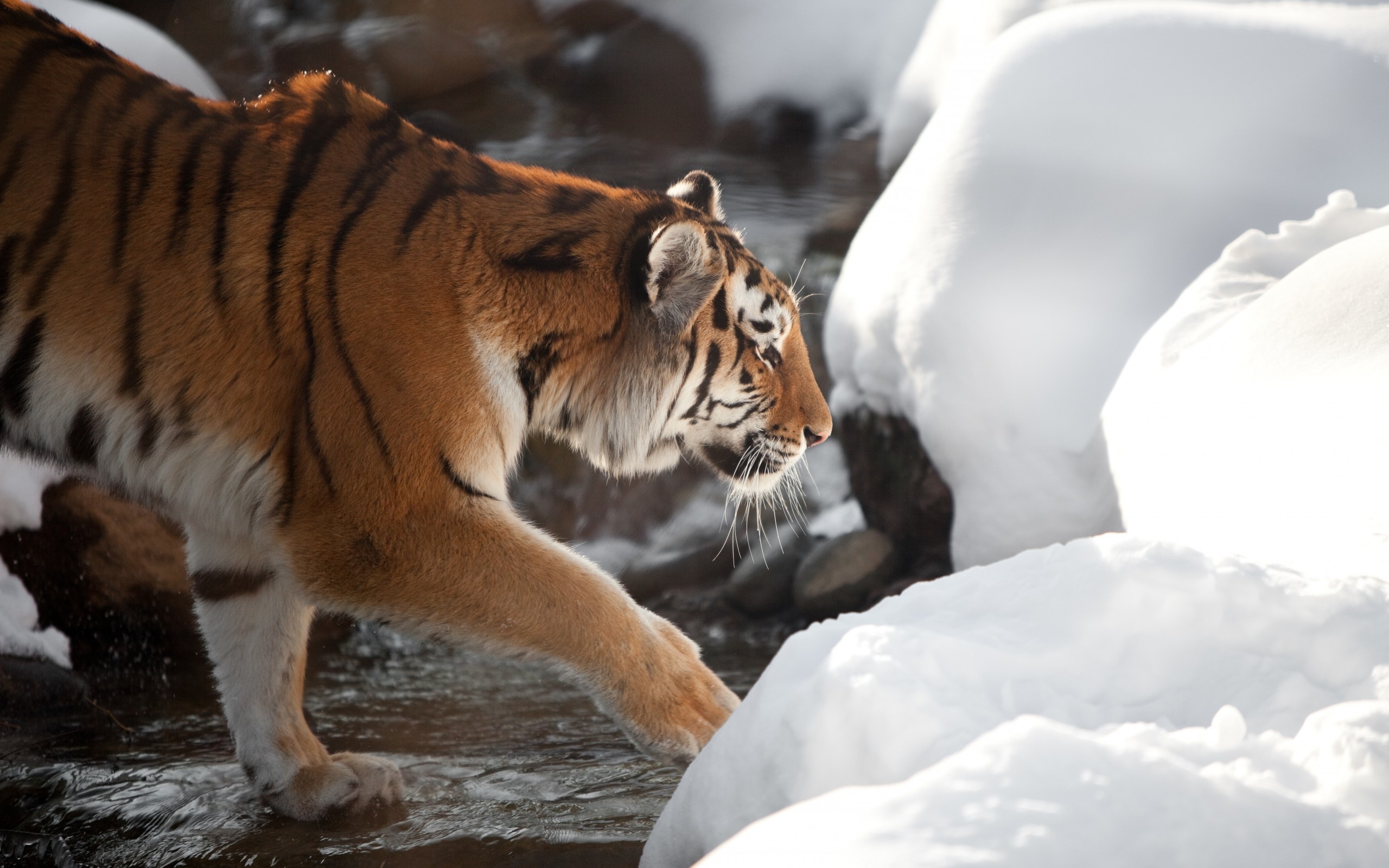 Edytor tapety: Tygrys, Potok, Kamienie, Zima