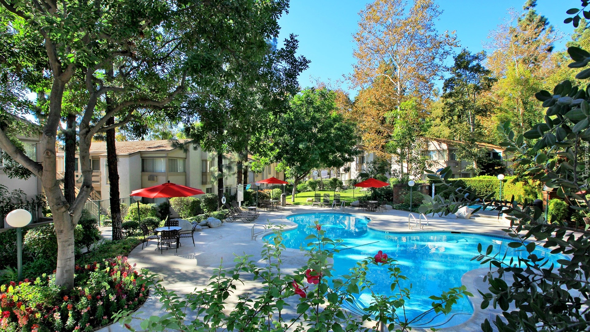 Edytor tapety: Hotel, Basen, Ogród