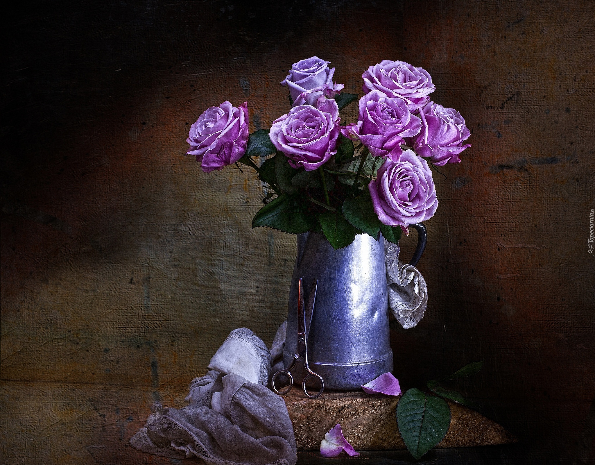 Edytor tapety: Róże, Kompozycja, Nożyczki, Chustka, Cynowy, Puchar