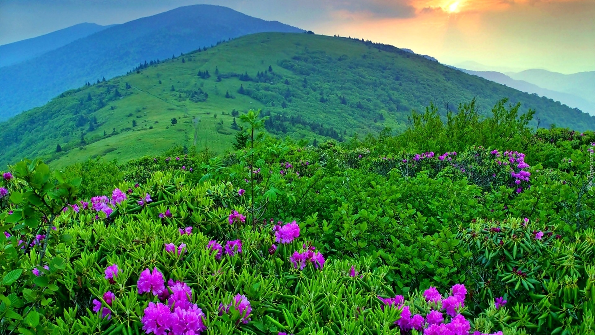Edytor tapety: Góry, Łąki, Wiosna, Kwitnące, Rododendrony