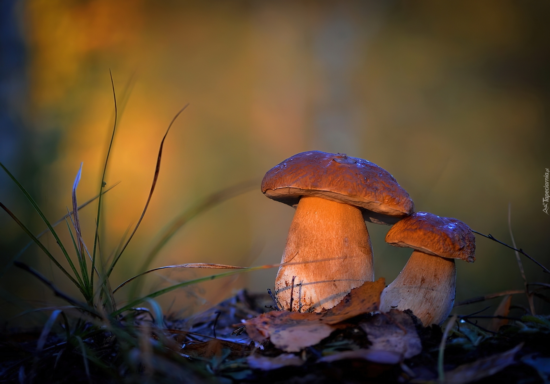 Edytor tapety: Dwa, Grzyby, Ściółka, Leśna, Blask