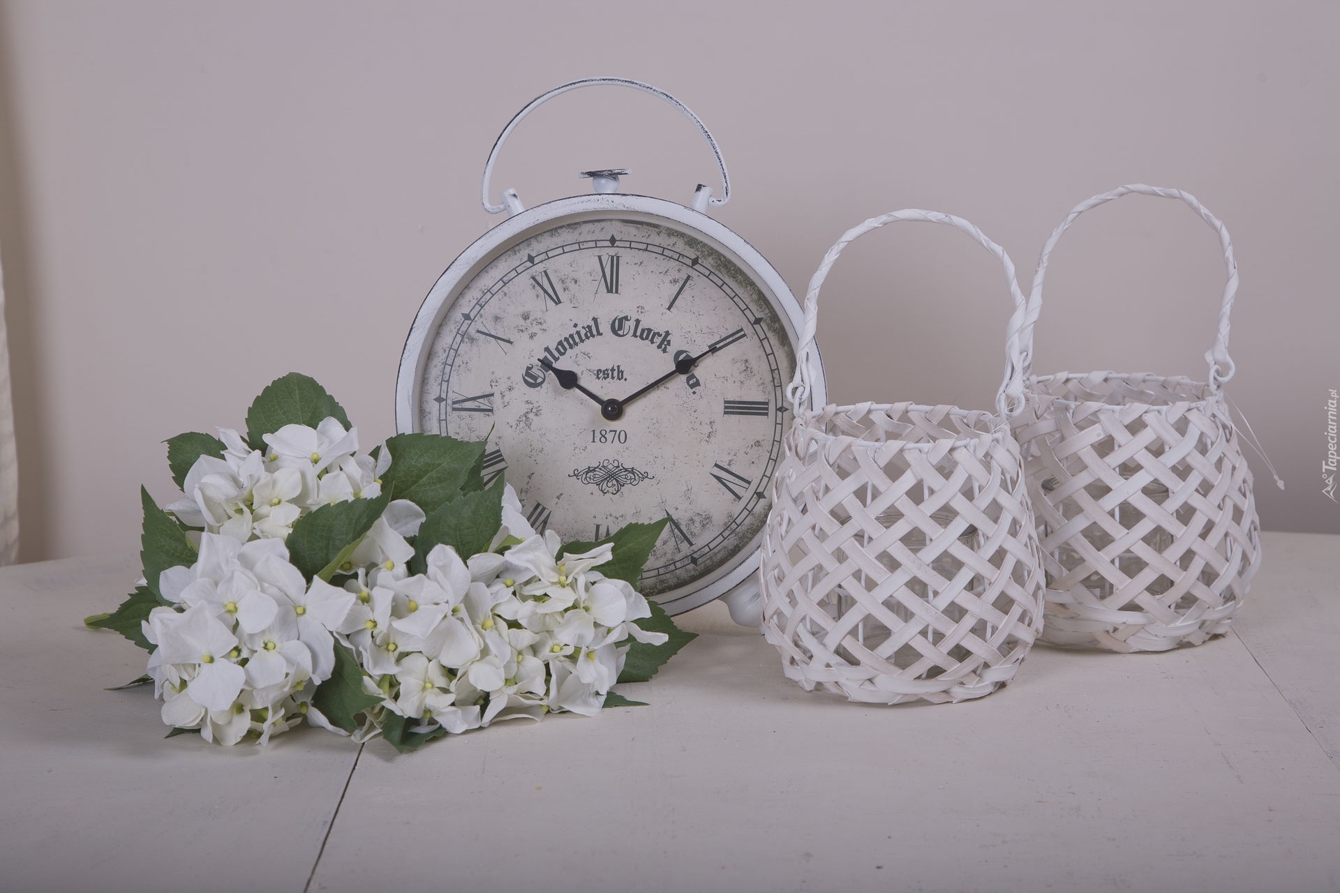 Edytor tapety: Dekoracje, Zegar, Koszyczki, Hortensja