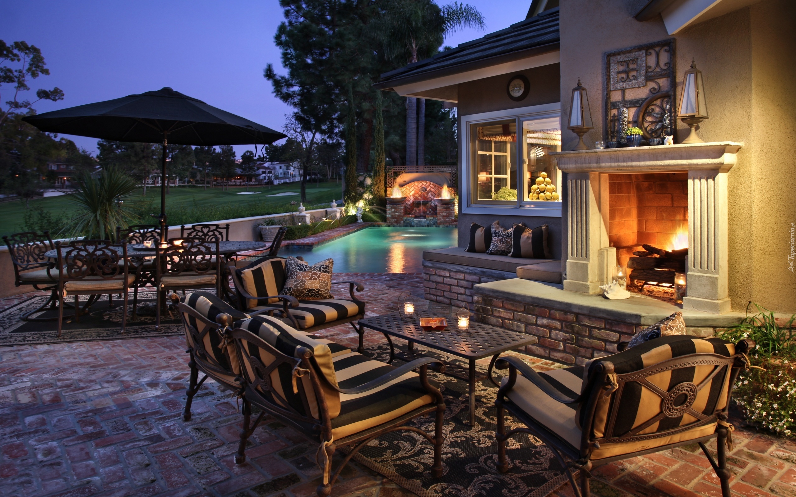 Edytor tapety: Restauracje, Stoliki, Fotele, Fontanna, Miasteczko