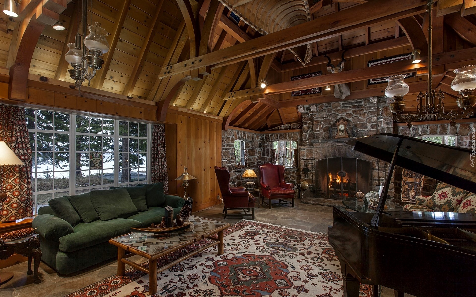 Edytor tapety: Pokój Dzienny, Drewniany, Strop, Fortepian
