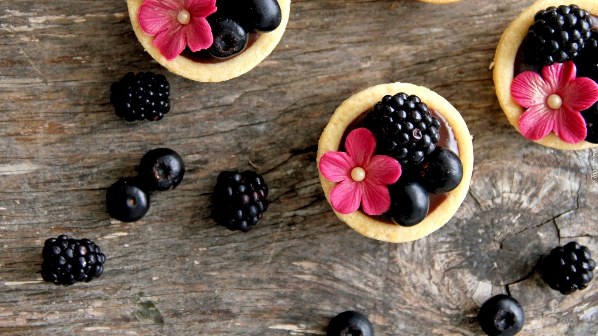 Edytor tapety: Ciastka, Jeżyny, Jagody, Kwiatki, Deska