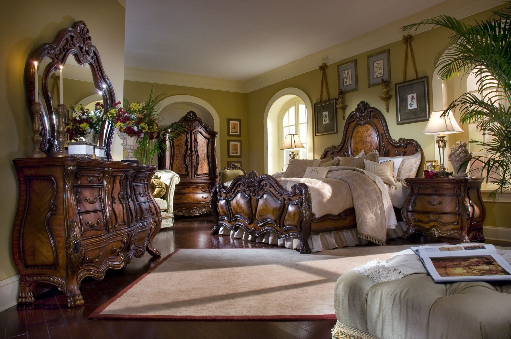 Edytor tapety: Sypialnia, Retro, Łoże, Komoda, Serwantka, Szafa