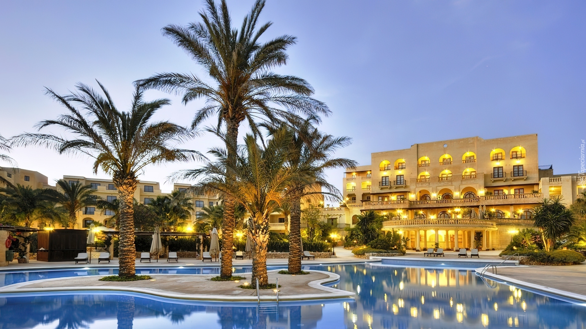 Edytor tapety: Hotel, Basen, Palmy