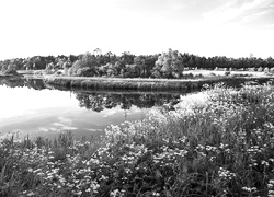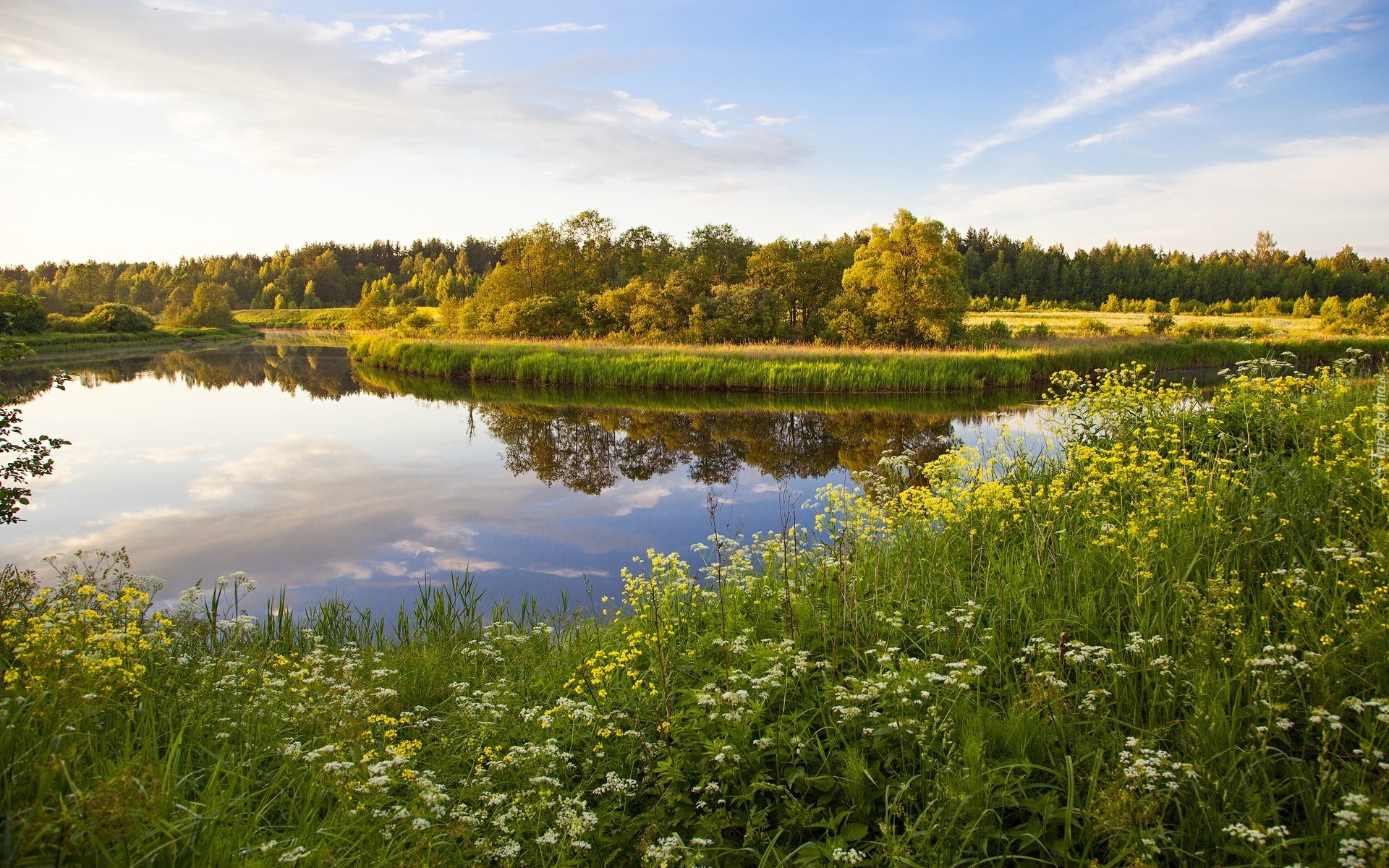 Edytor tapety: Łąka, Kwiaty, Rzeka, Lasy, Wiosna