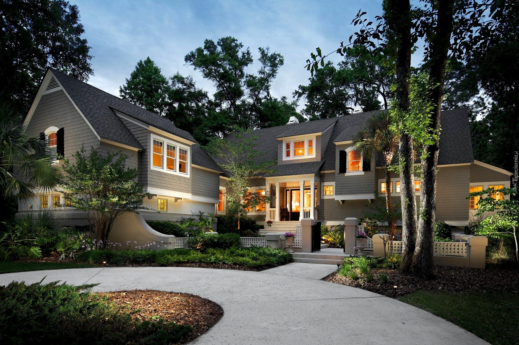 Edytor tapety: Oświetlony, Dom, Podjazd, Posesja