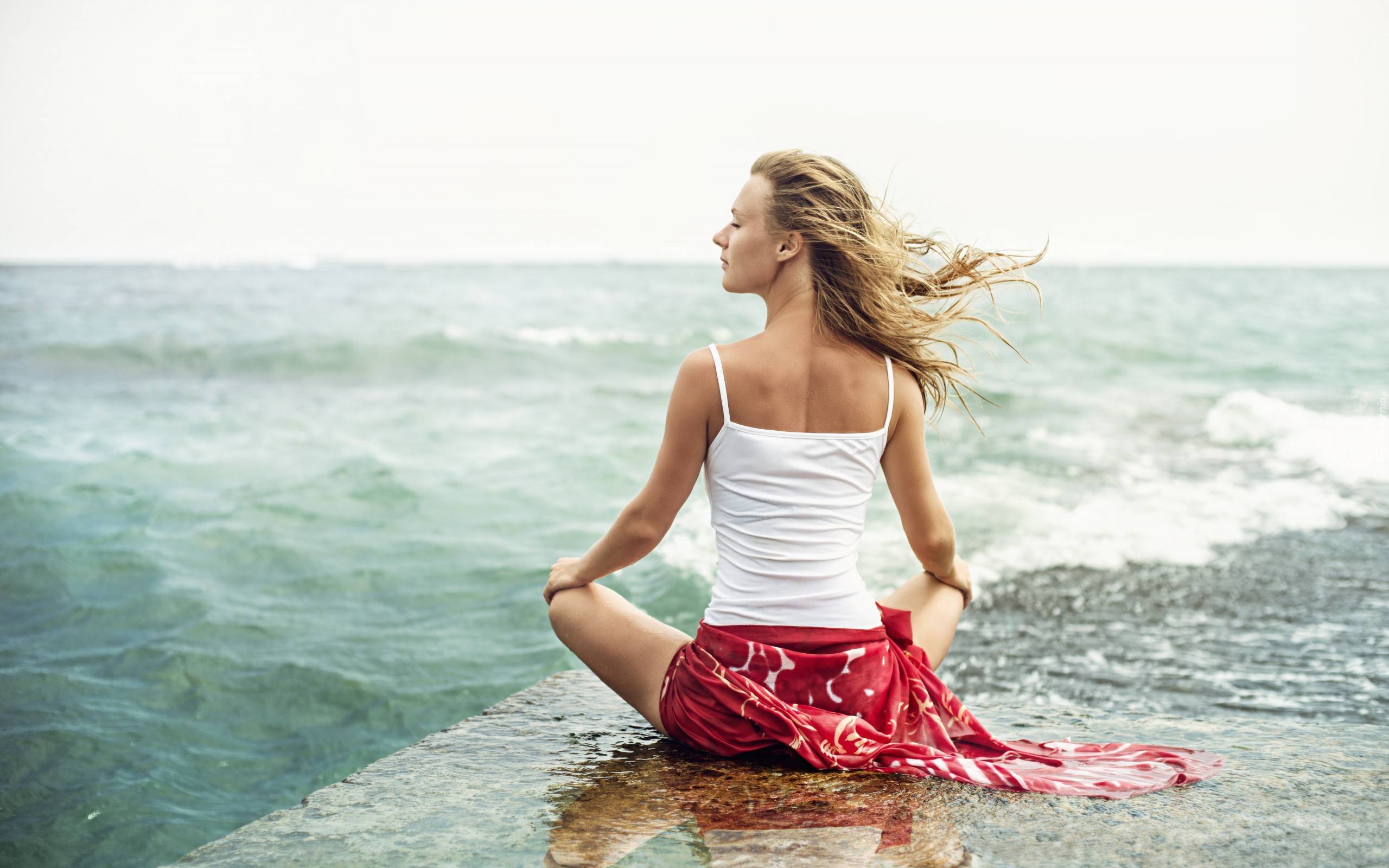 Edytor tapety: Morze, Kobieta, Rozwiane, Włosy