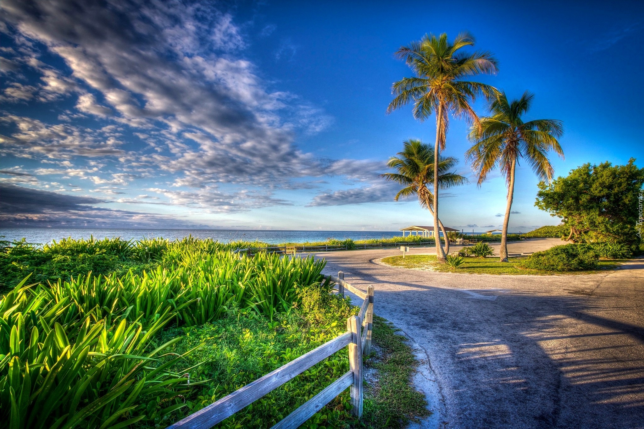 Edytor tapety: Droga, Palmy, Ocean, Tropiki