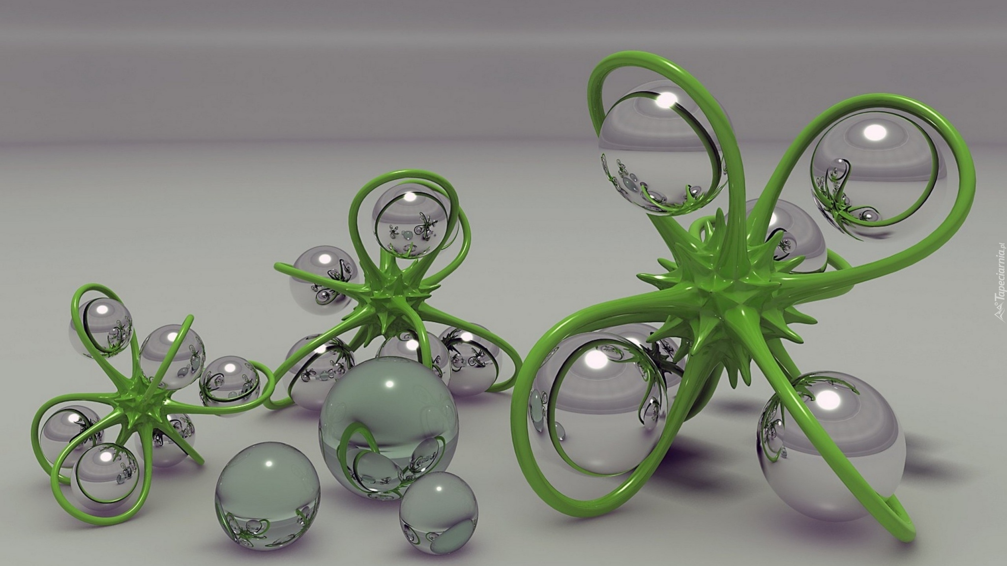 Edytor tapety: Abstrakcja, Kule, Zieleń