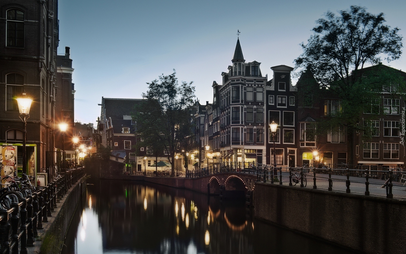 Edytor tapety: Wieczór, Amsterdam, Domy, Miasto, Latarnie