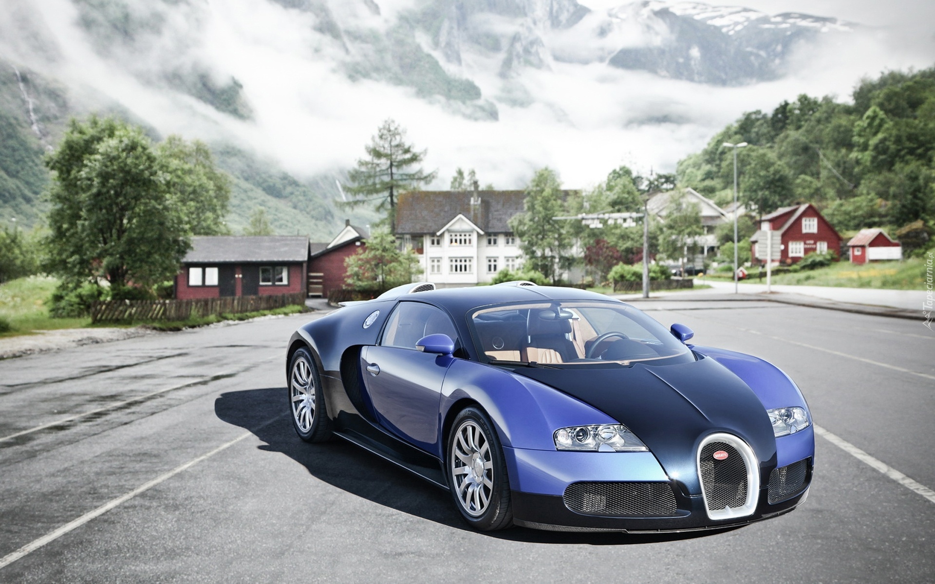 Edytor tapety: Niebieskie, Bugatti, Veyron, Ulica, Domy